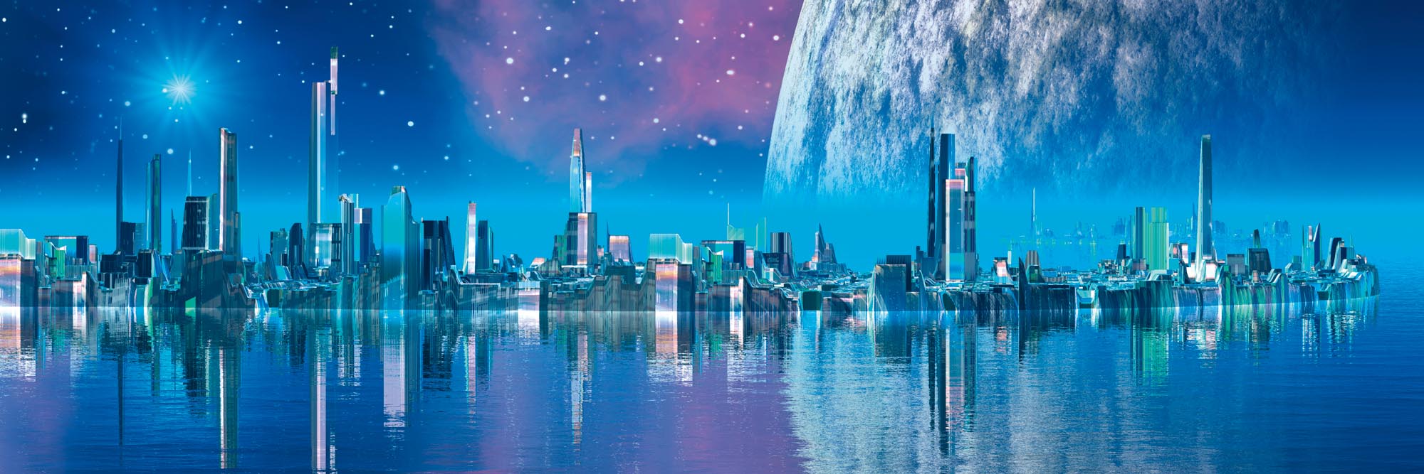 KI-180-036 Fototapet autoadeziv pentru bucătărie – Orașul viitorului 180 x 60 cm