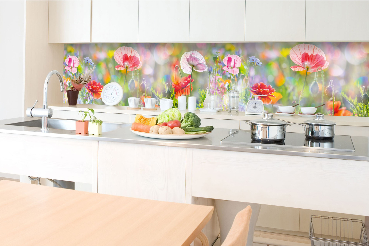 KI-350-199 Fototapet autoadeziv pentru bucătărie – Pajiște colorată de vară 350 x 60 cm
