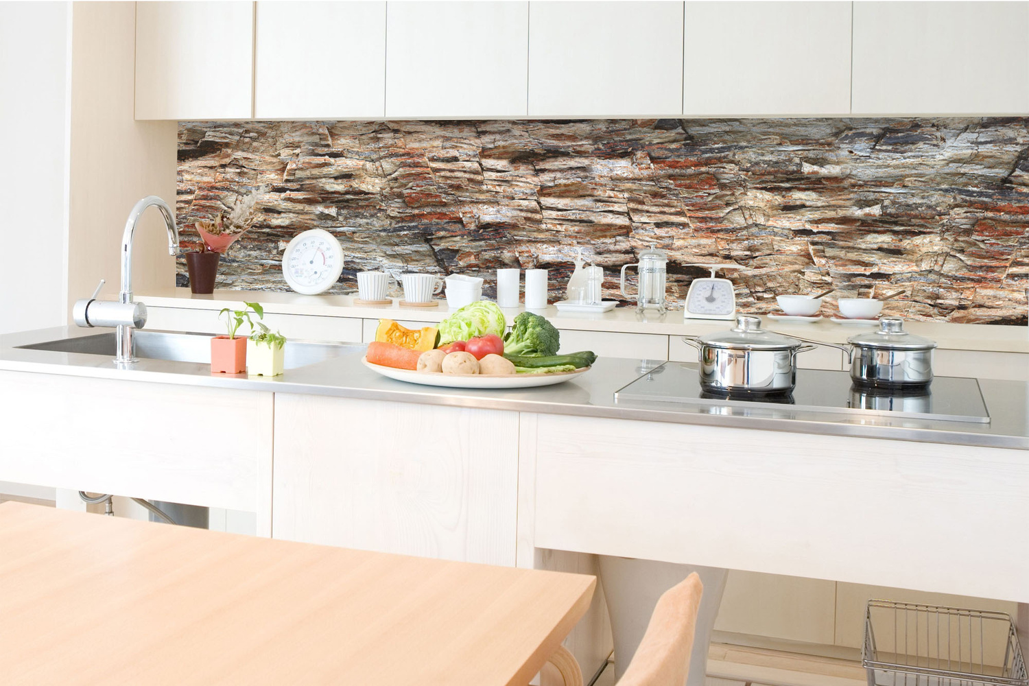 KI-350-253 Fototapet autoadeziv pentru bucătărie – Perete de piatră 350 x 60 cm