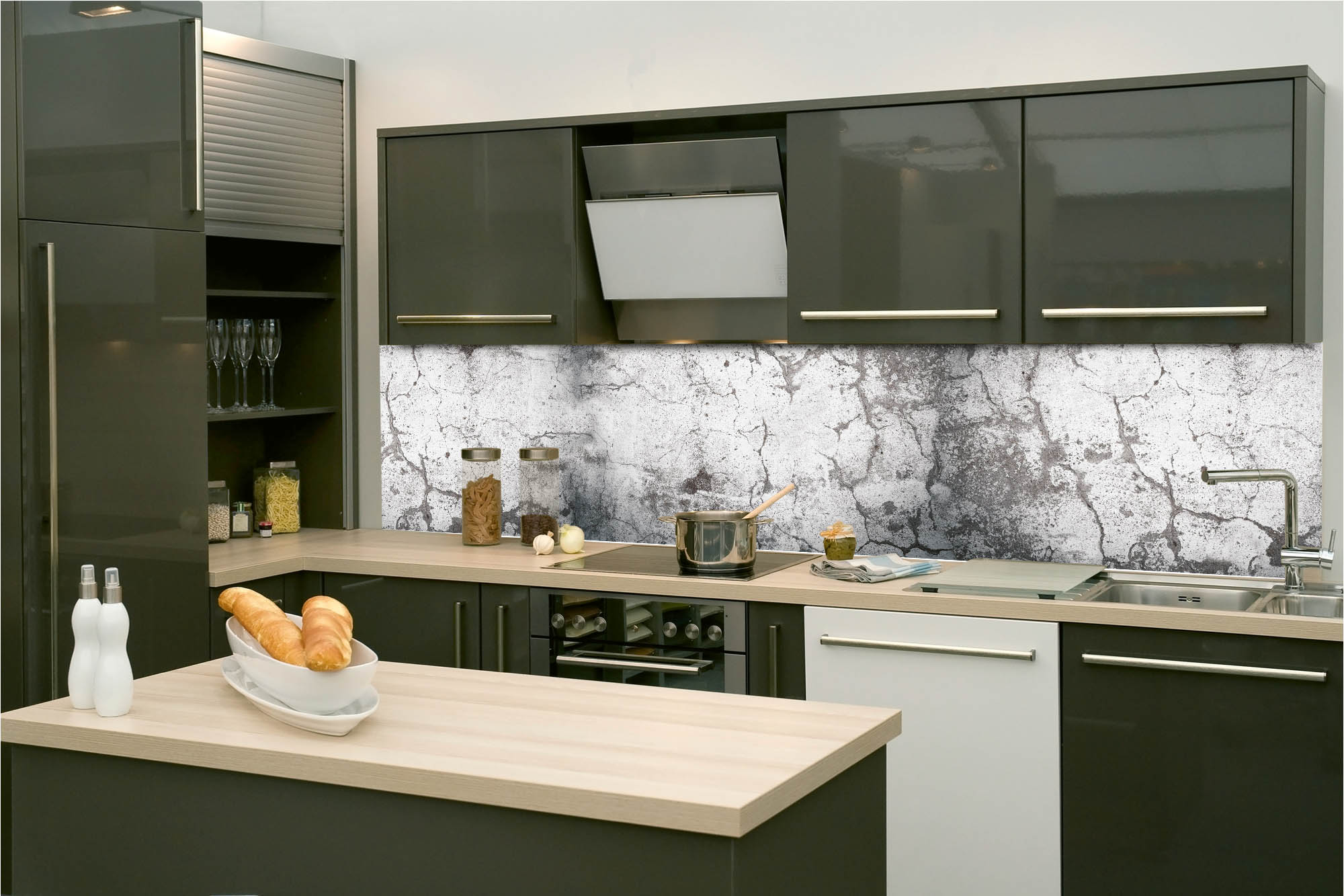 KI-260-269 Fototapet autoadeziv pentru bucătărie – Perete Gri Exfoliat 260 x 60 cm