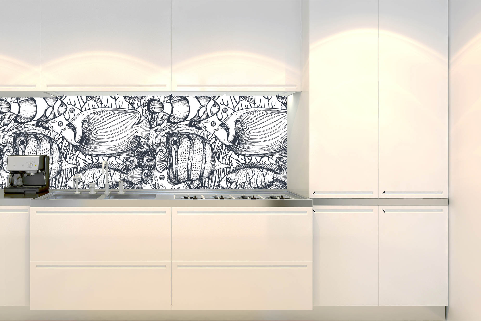 KI-180-183 Fototapet autoadeziv pentru bucătărie – Pești alb-negri 180 x 60 cm