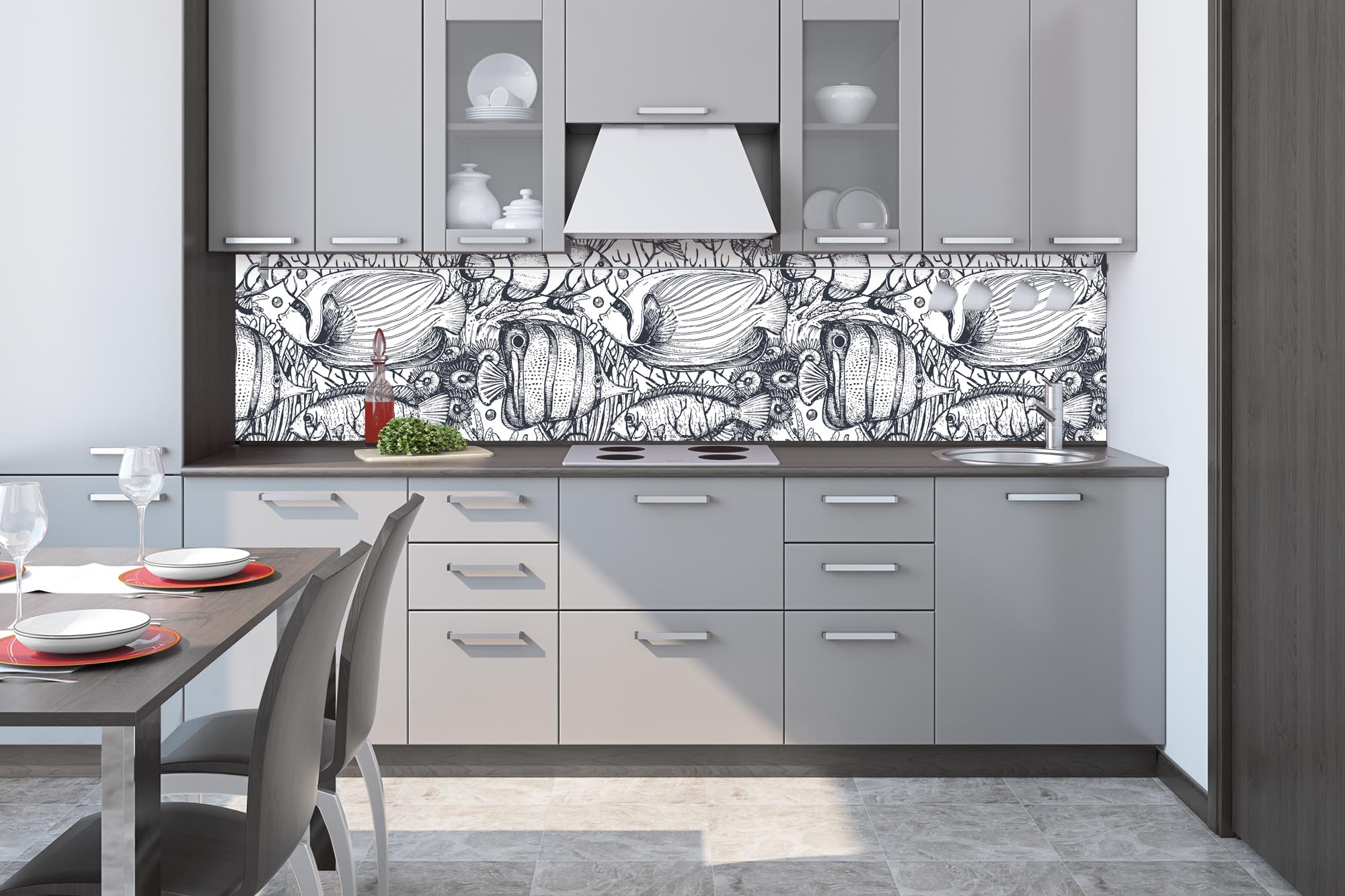 KI-260-183 Fototapet autoadeziv pentru bucătărie – Pești alb-negru 260 x 60 cm