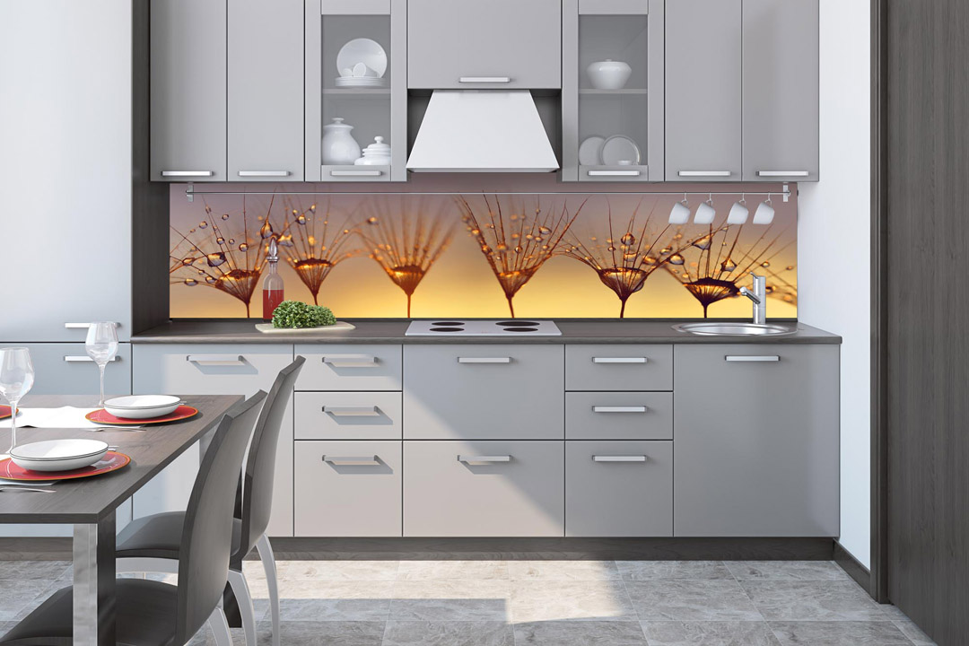 KI-260-121 Fototapet autoadeziv pentru bucătărie – Picături pe o păpădie 260 x 60 cm