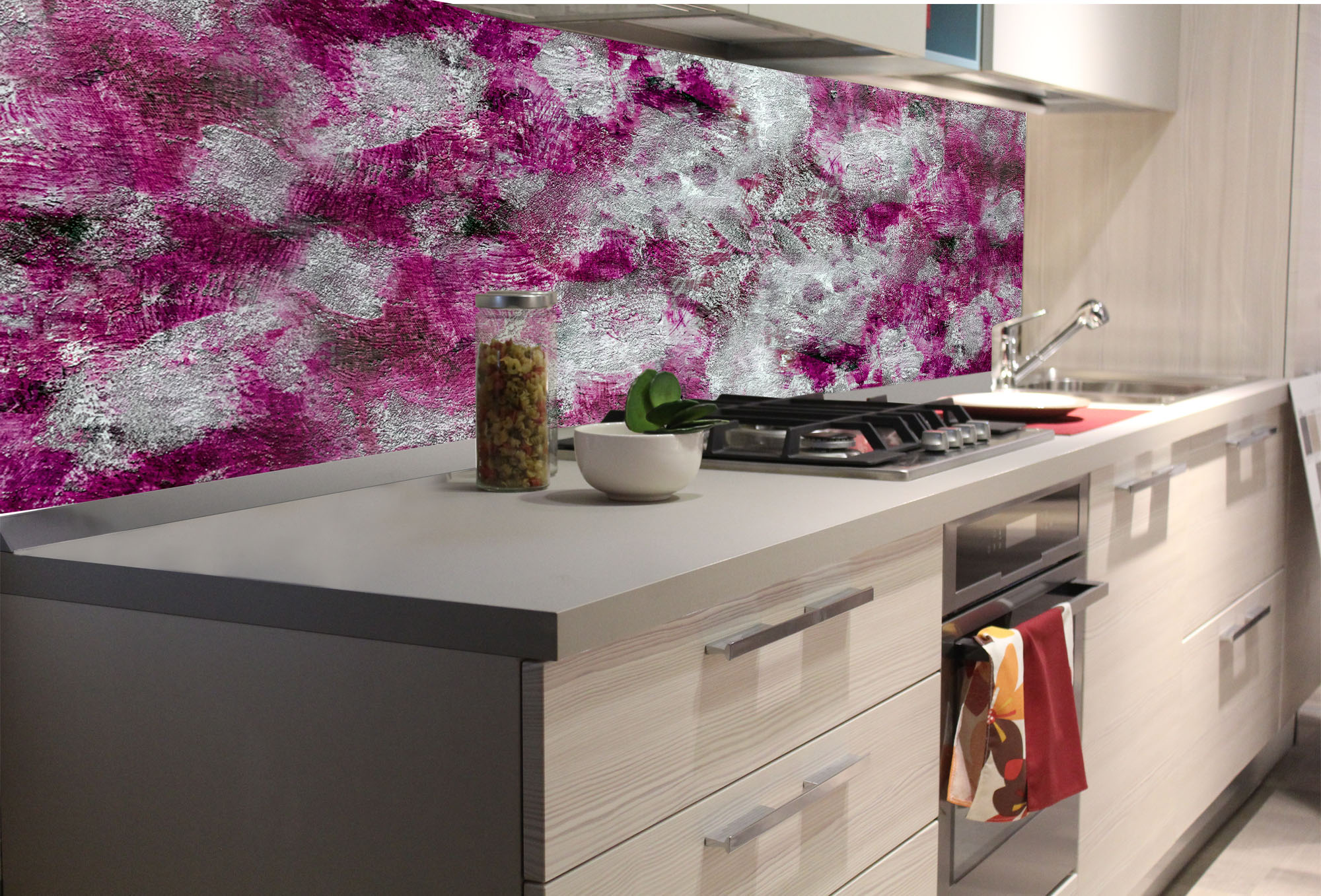 KI-180-284 Fototapet autoadeziv pentru bucătărie – Pictură abstractă violet 180 x 60 cm