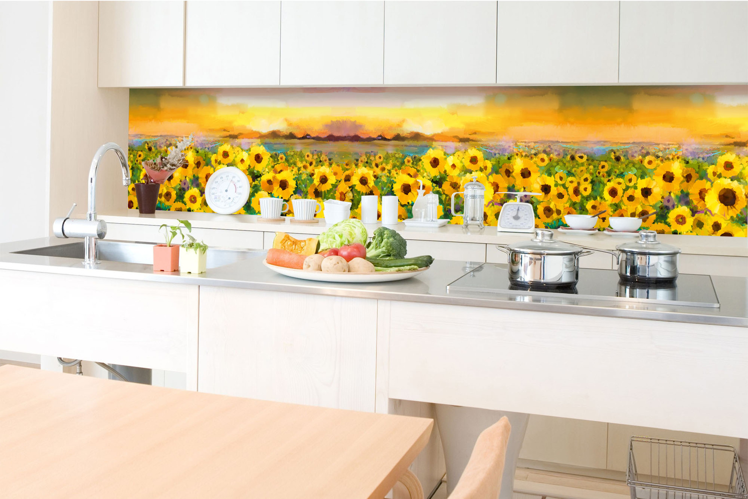KI-350-214 Fototapet autoadeziv pentru bucătărie – Pictură cu floarea soarelui 350 x 60 cm