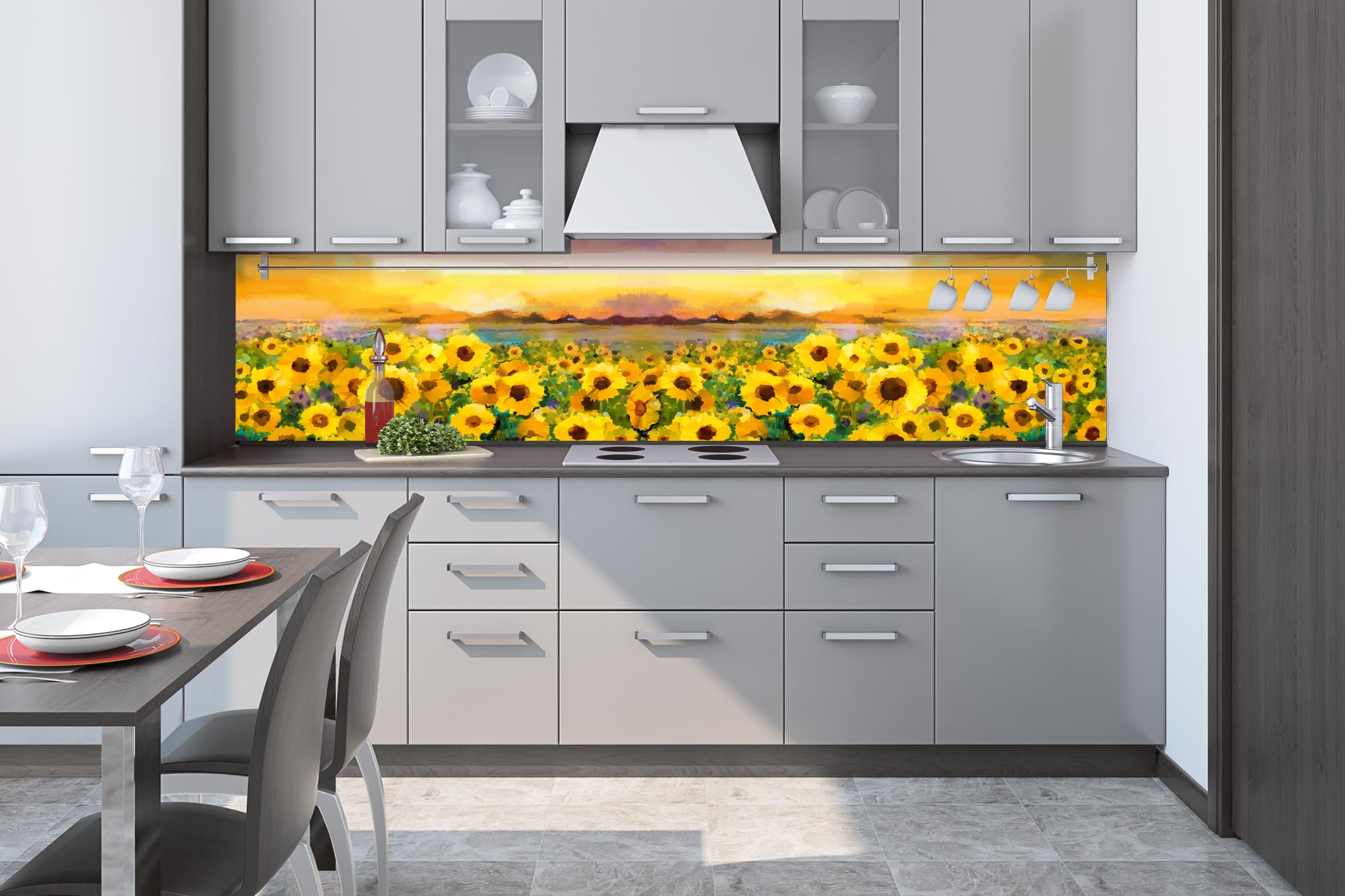 KI-260-214 Fototapet autoadeziv pentru bucătărie – Pictură în floarea soarelui 260 x 60 cm