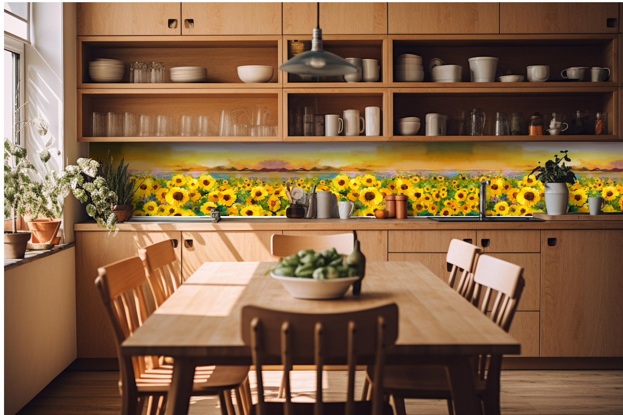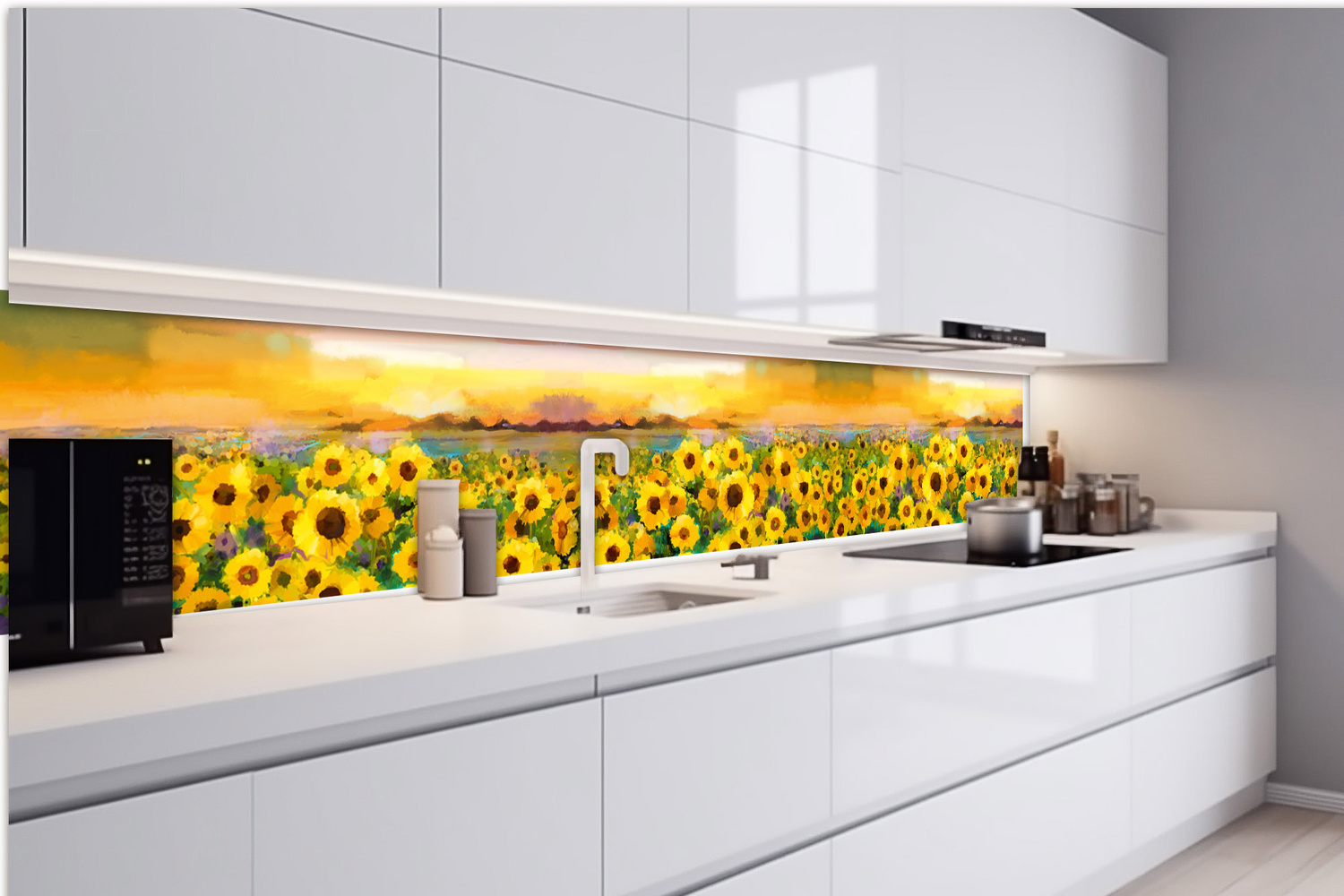 KI-420-214 Fototapet autoadeziv pentru bucătărie – Pictură în floarea soarelui 420 x 60 cm