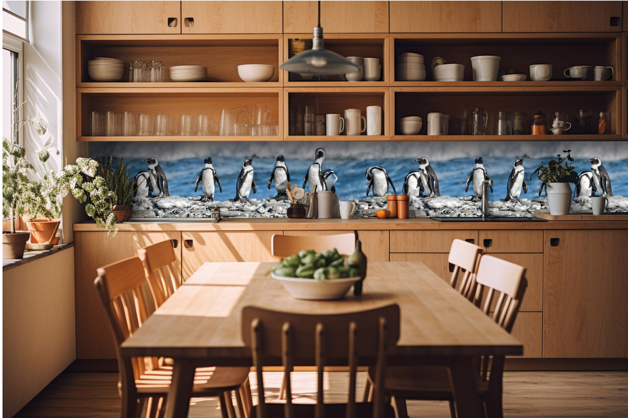 KI-420-112 Fototapet autoadeziv pentru bucătărie – Pinguini 420 x 60 cm
