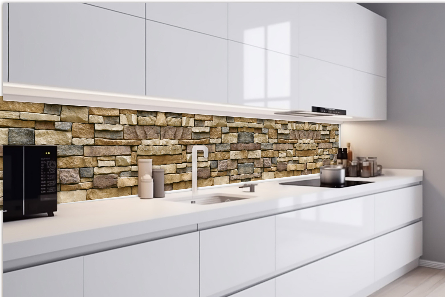 KI-420-256 Fototapet autoadeziv pentru bucătărie – Placare cu piatră bej 420 x 60 cm