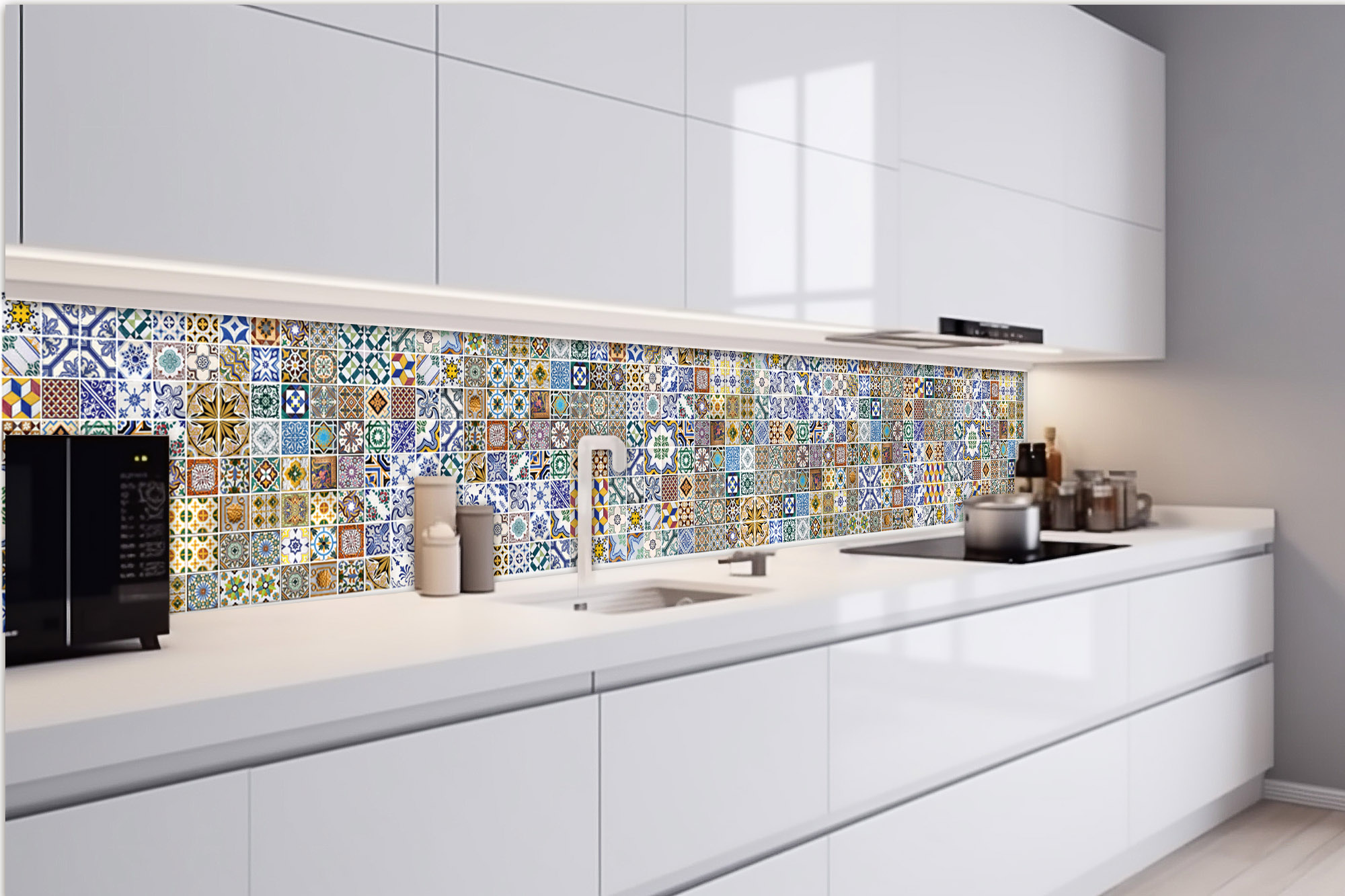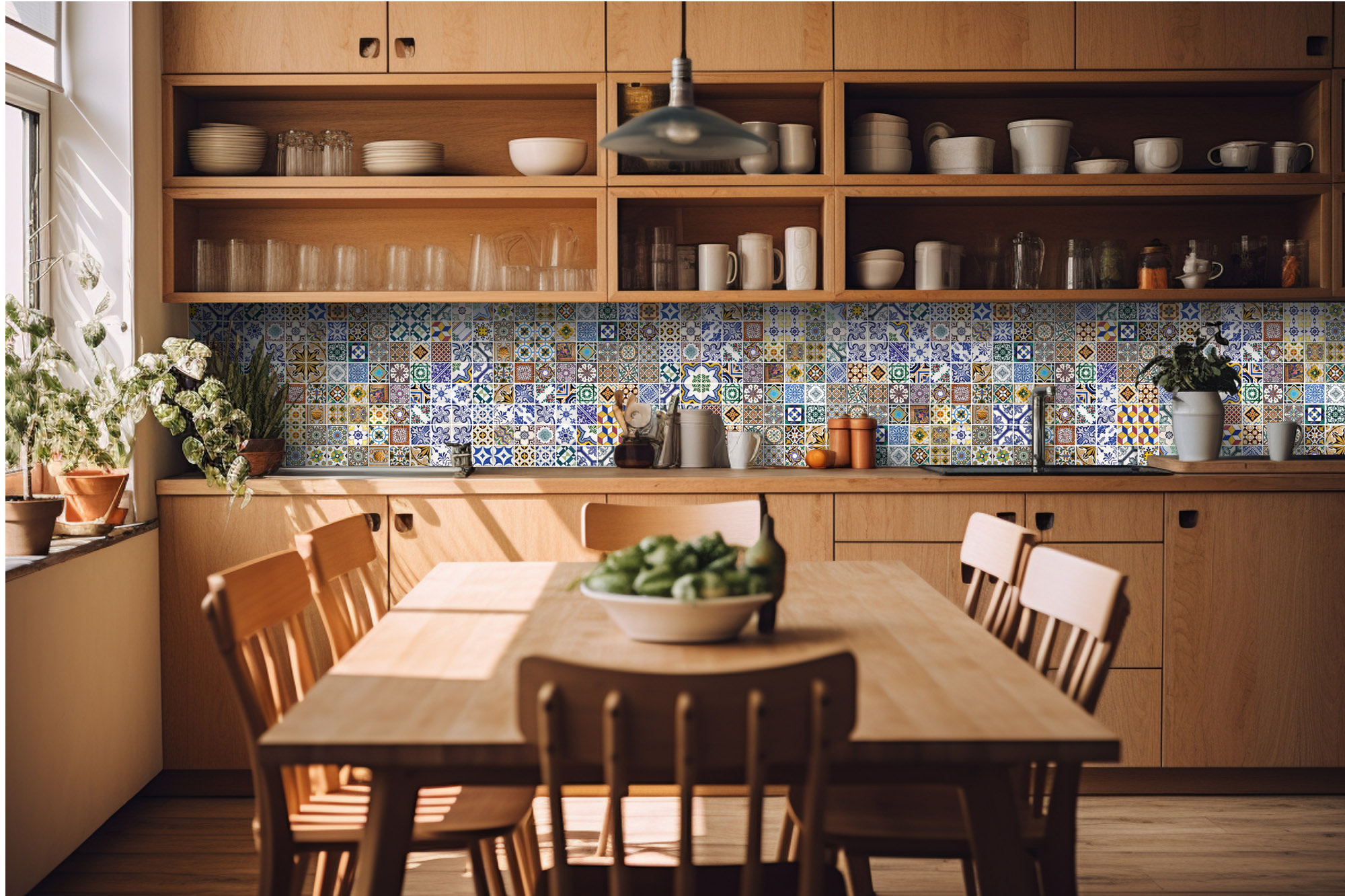 KI-420-097 Fototapet autoadeziv pentru bucătărie – Plăci portugheze 420 x 60 cm