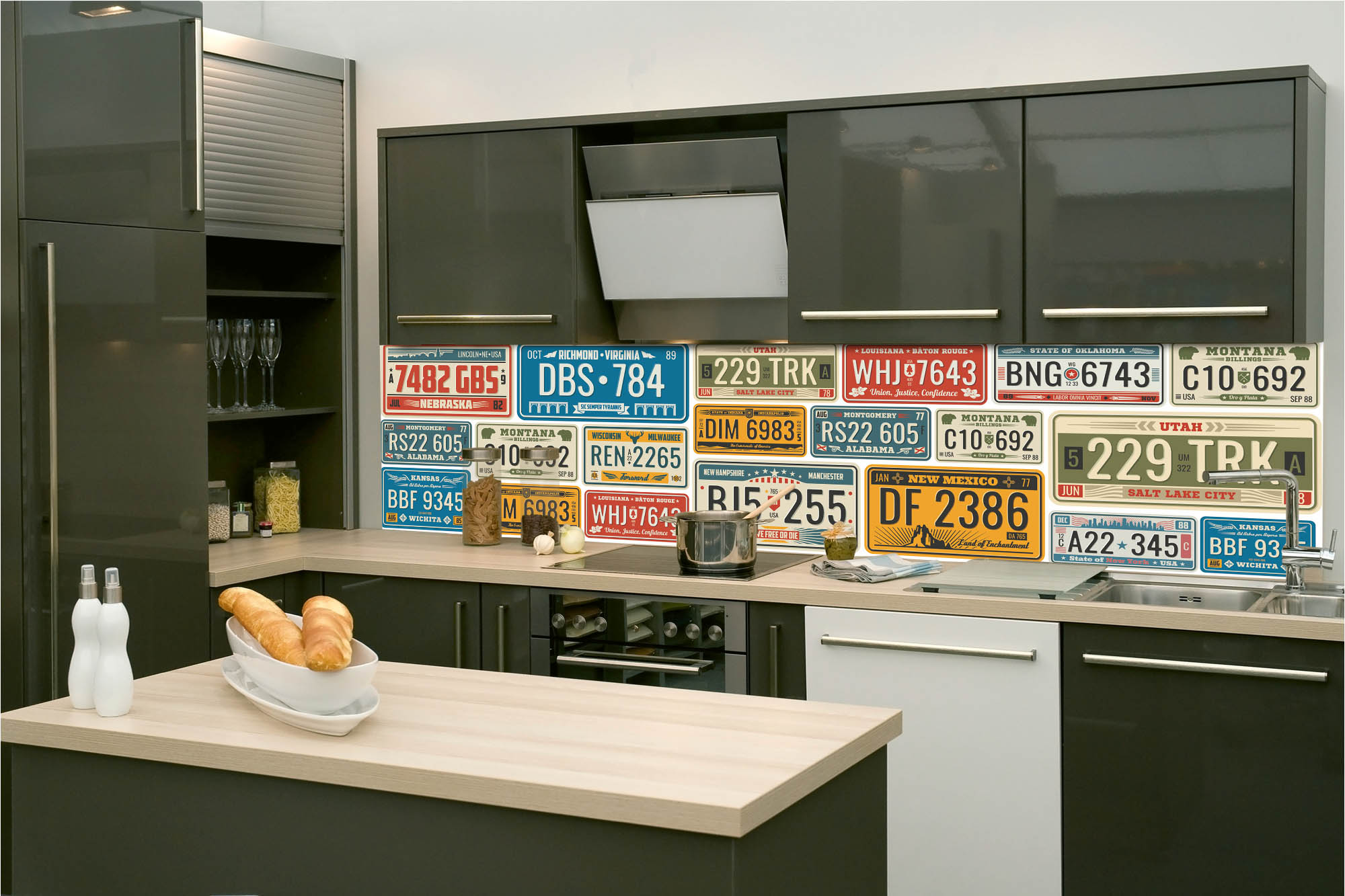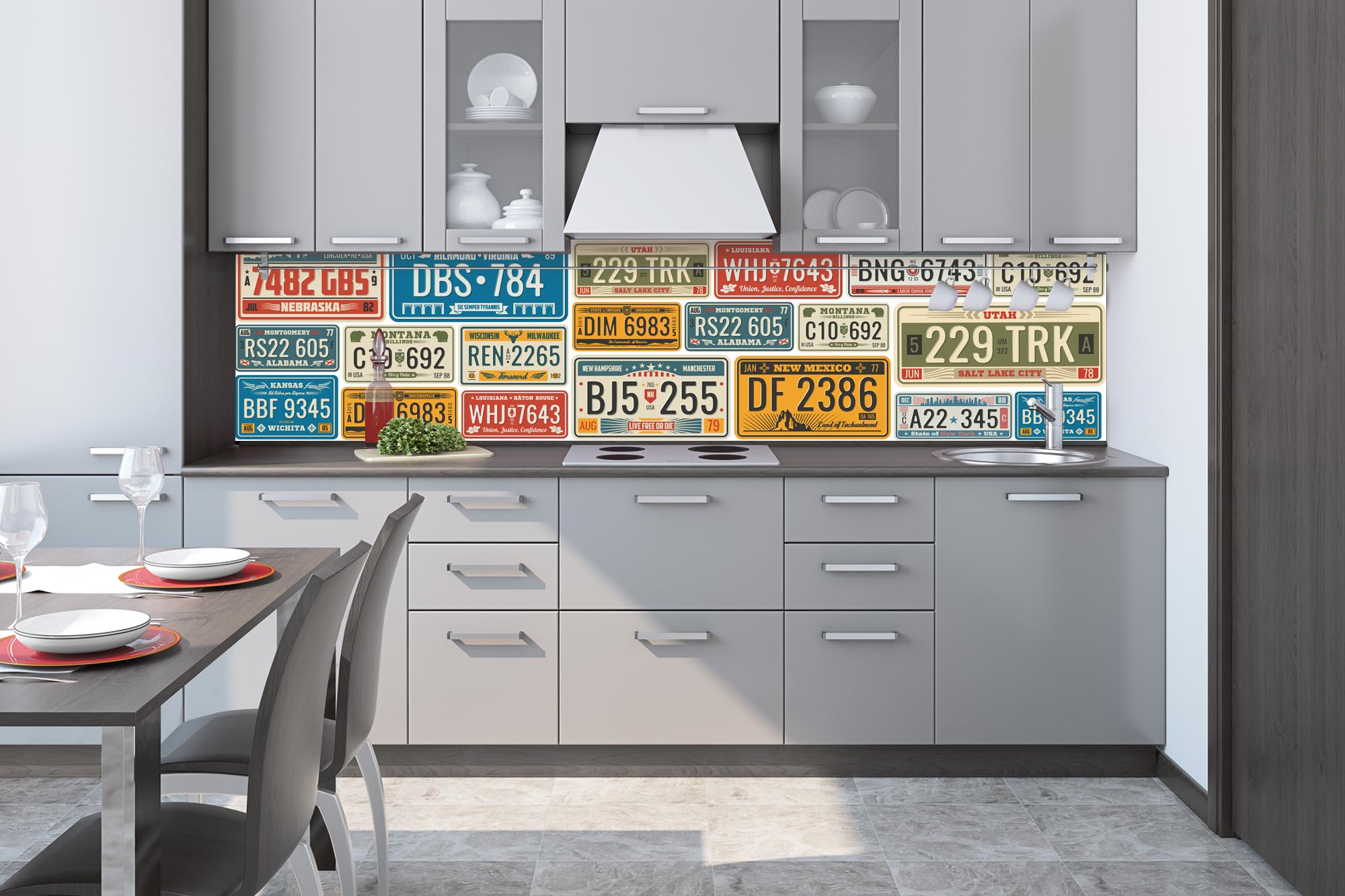 KI-260-227 Fototapet autoadeziv pentru bucătărie – Plăcuță de înmatriculare retro 260 x 60 cm