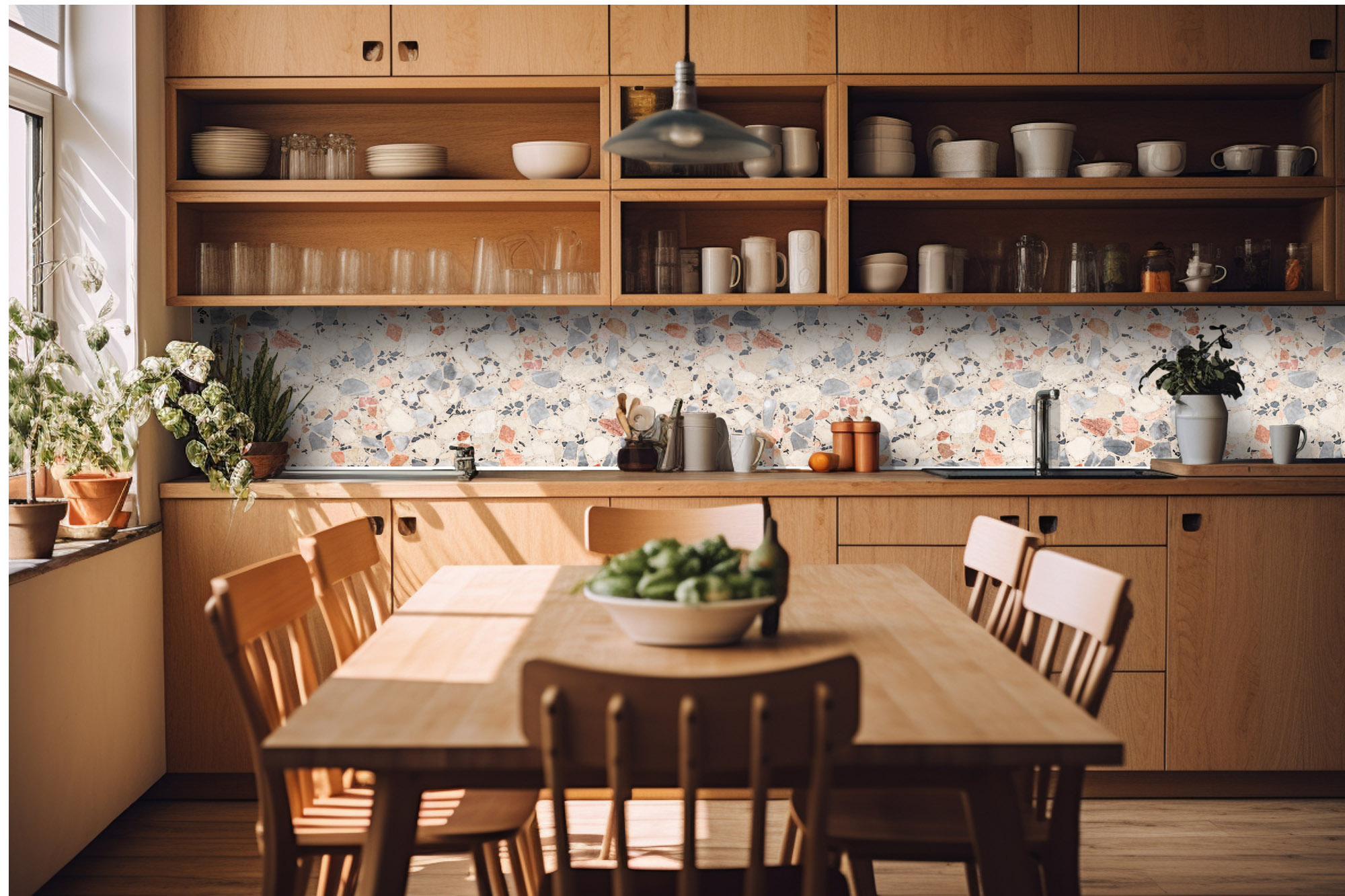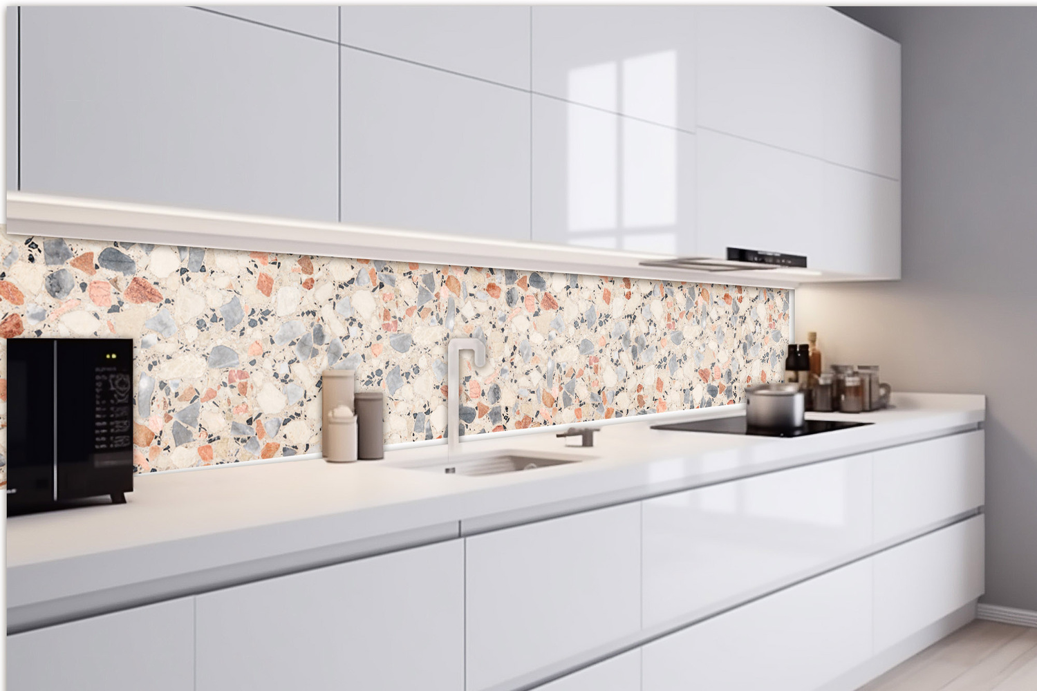 KI-420-246 Fototapet autoadeziv pentru bucătărie – Podea din terazzo 420 x 60 cm