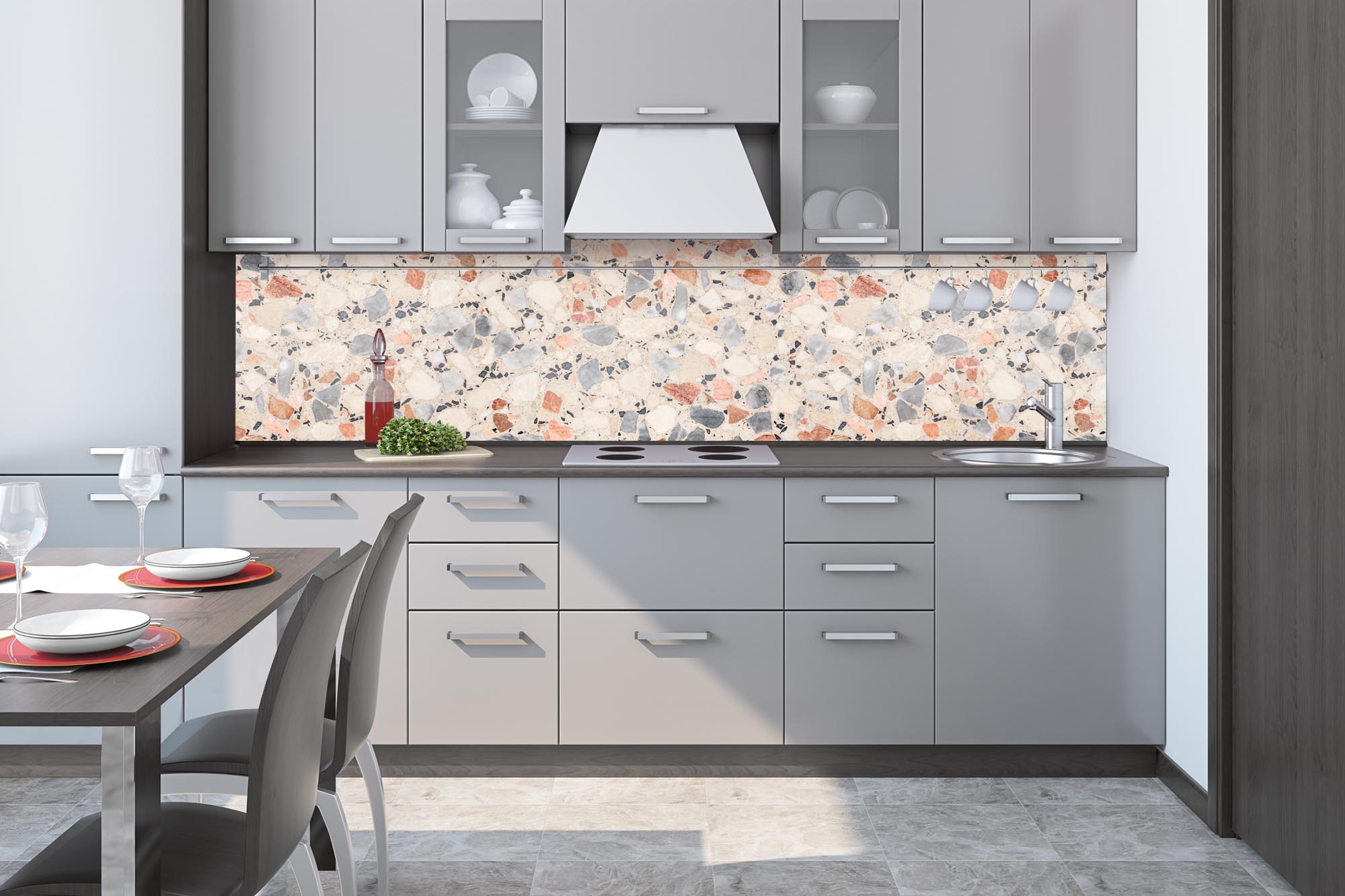 KI-260-246 Fototapet autoadeziv pentru bucătărie – Podea Terrazzo 260 x 60 cm
