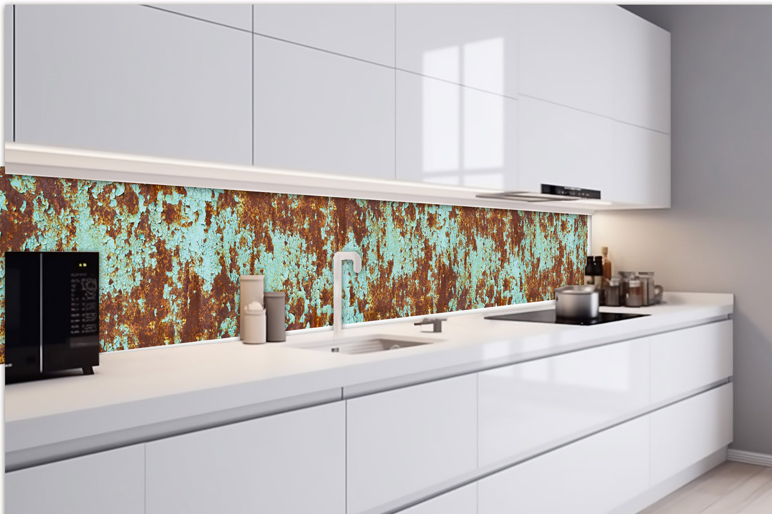 KI-420-268 Fototapet autoadeziv pentru bucătărie – Rugină pe metal vechi colorat 420 x 60 cm