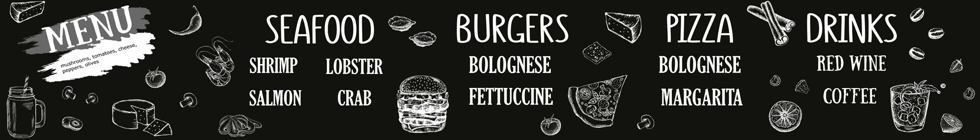 KI-420-225 Fototapet autoadeziv pentru bucătărie – Semn negru de restaurant 420 x 60 cm