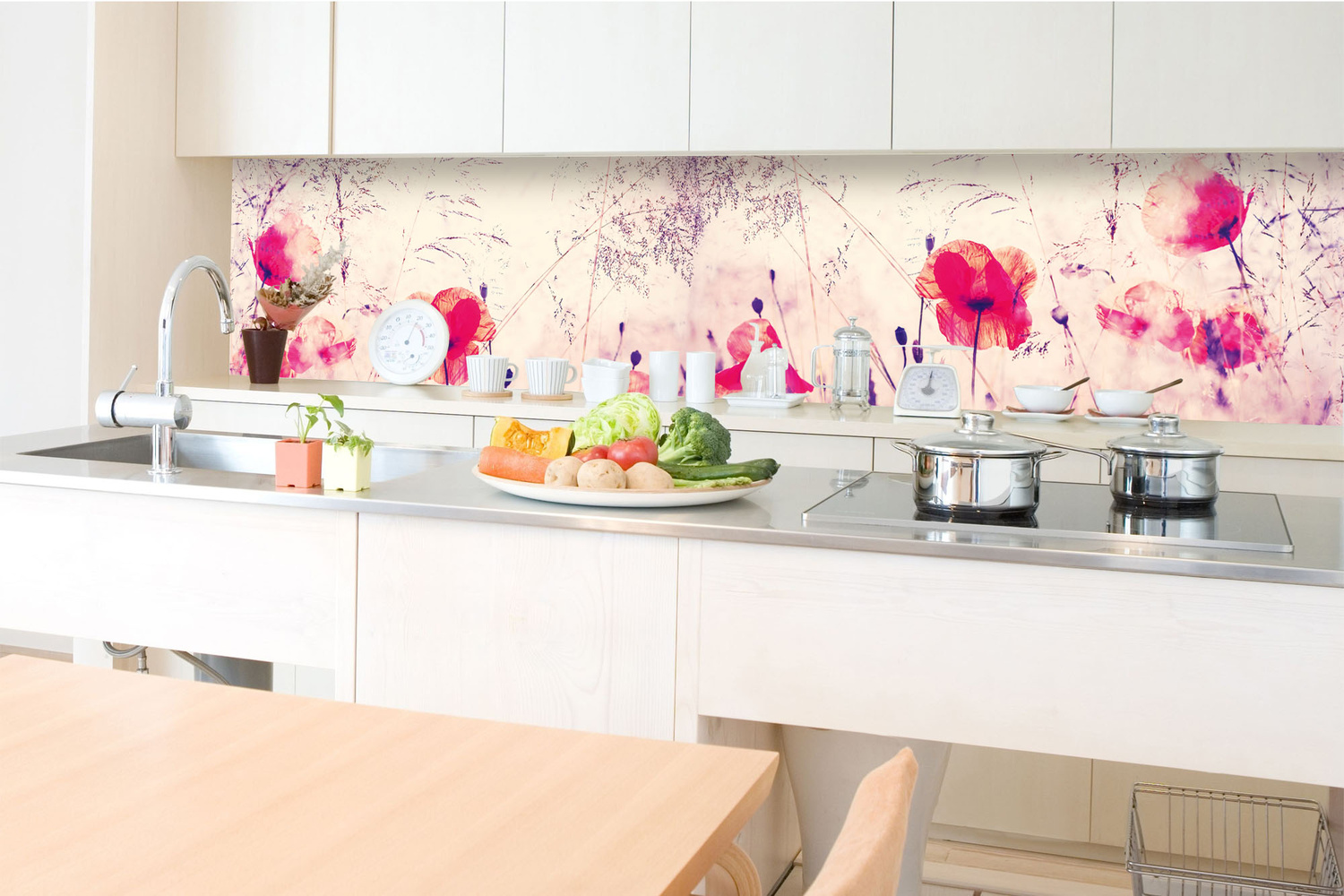 KI-350-218 Fototapet autoadeziv pentru bucătărie – Tapet de bucătărie - Câmp de maci vintage 350 x 60 cm