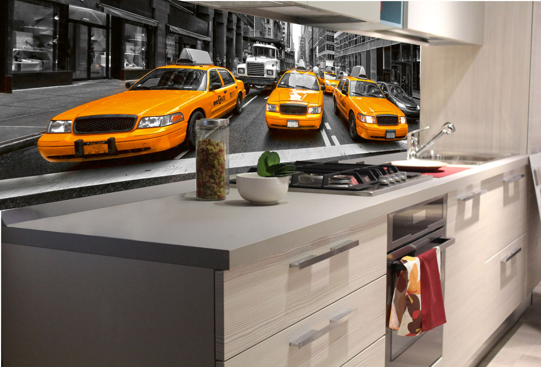 KI-180-041 Fototapet autoadeziv pentru bucătărie – Taxi galben 180 x 60 cm