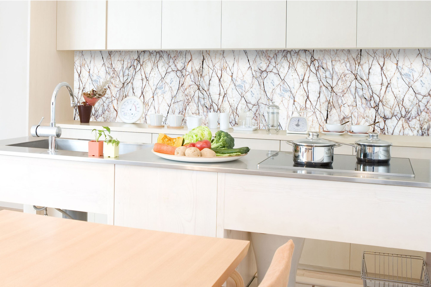 KI-350-273 Fototapet autoadeziv pentru bucătărie – Textură de marmură albă 350 x 60 cm