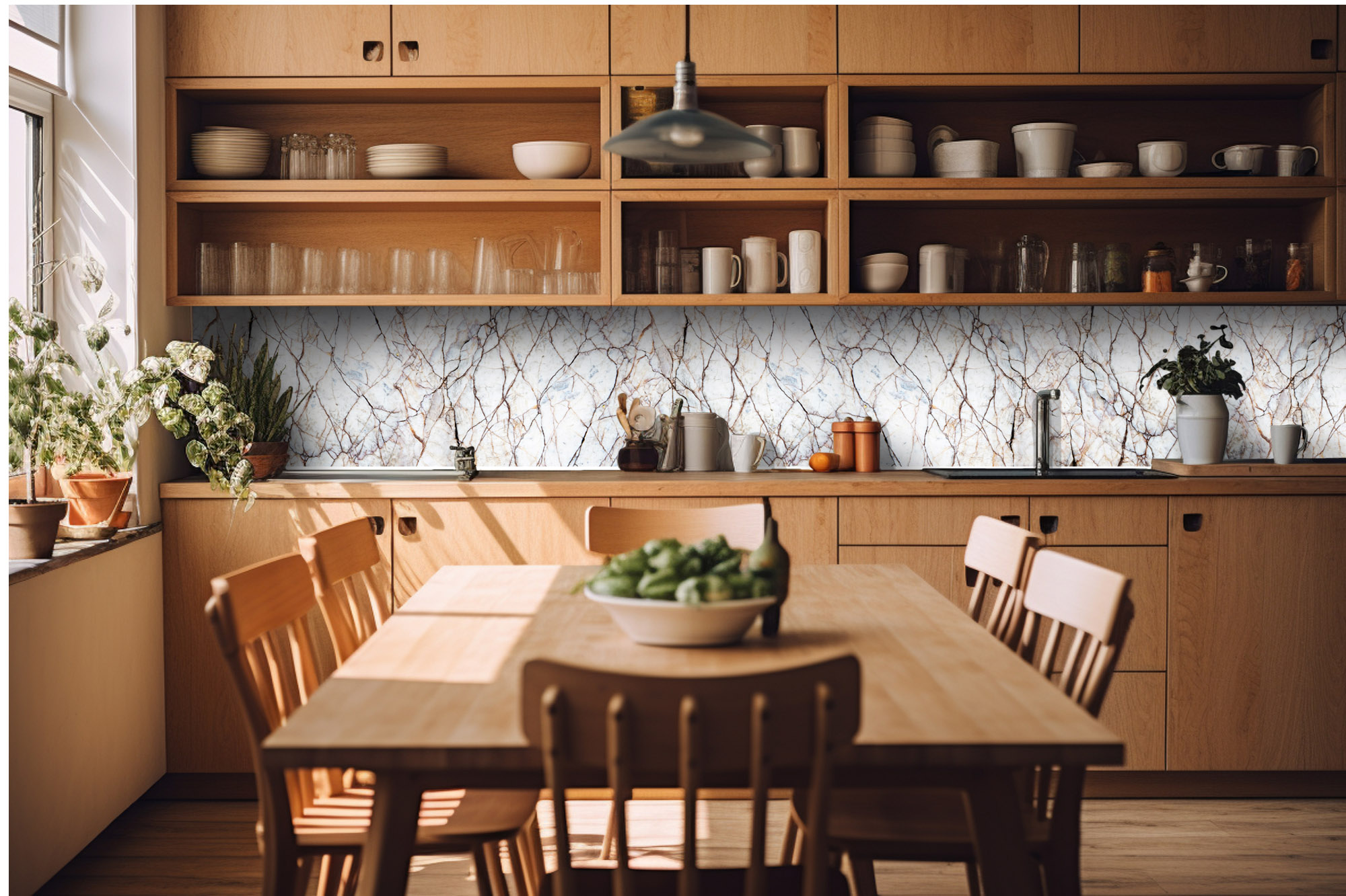 Fototapetele autoadezive pentru bucătărie cu motive de natură, pietre prețioase sau abstracte oferă bucătăriei dvs. nu doar un aspect modern care luminează întregul spațiu, ci și fac momentele prețioase petrecute aici cu familia sau prietenii mai plăcute. Stickerele pentru bucătărie DIMEX LINE se remarcă prin calitate superioară.