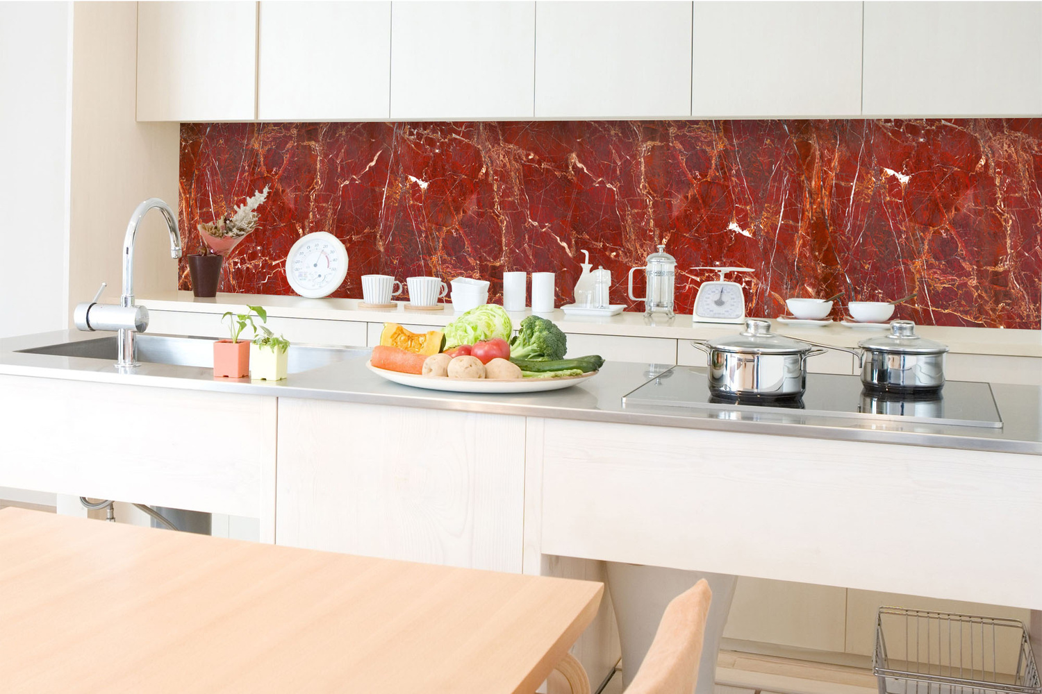 KI-350-275 Fototapet autoadeziv pentru bucătărie – Textură de marmură roșie 350 x 60 cm