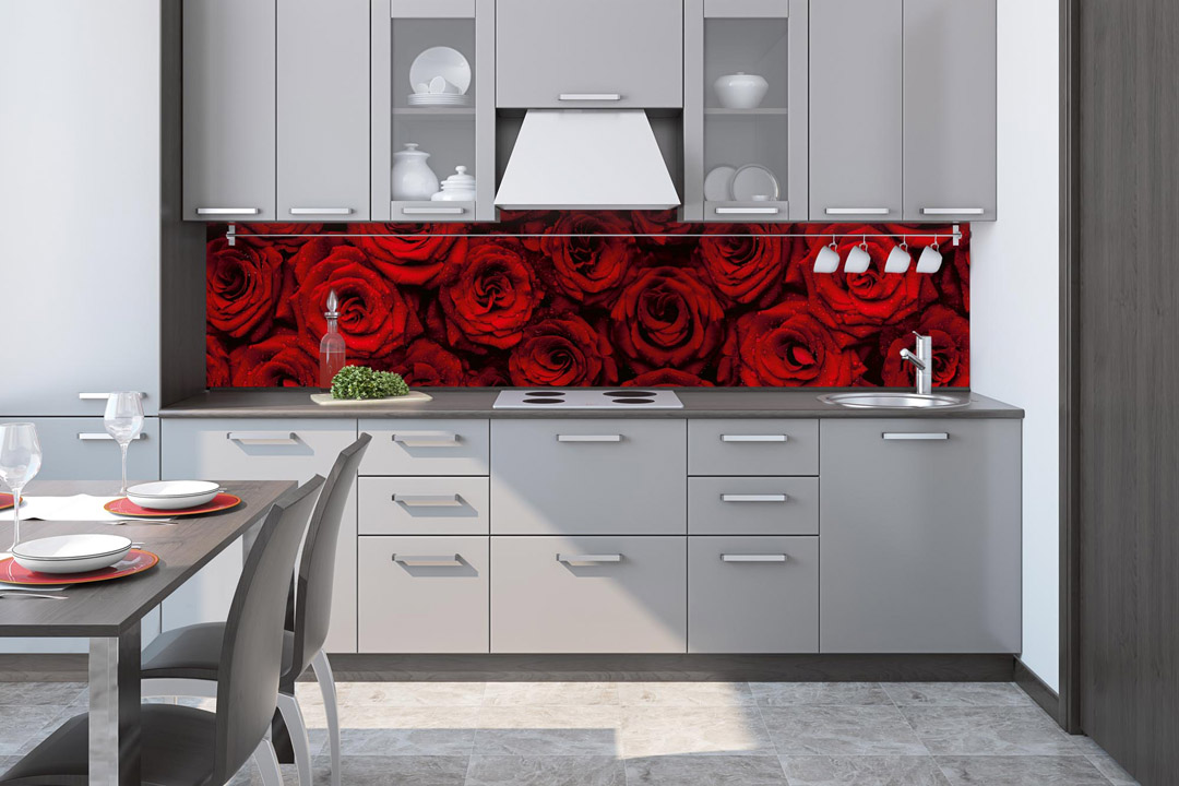 KI-260-132 Fototapet autoadeziv pentru bucătărie – Trandafiri roșii 260 x 60 cm