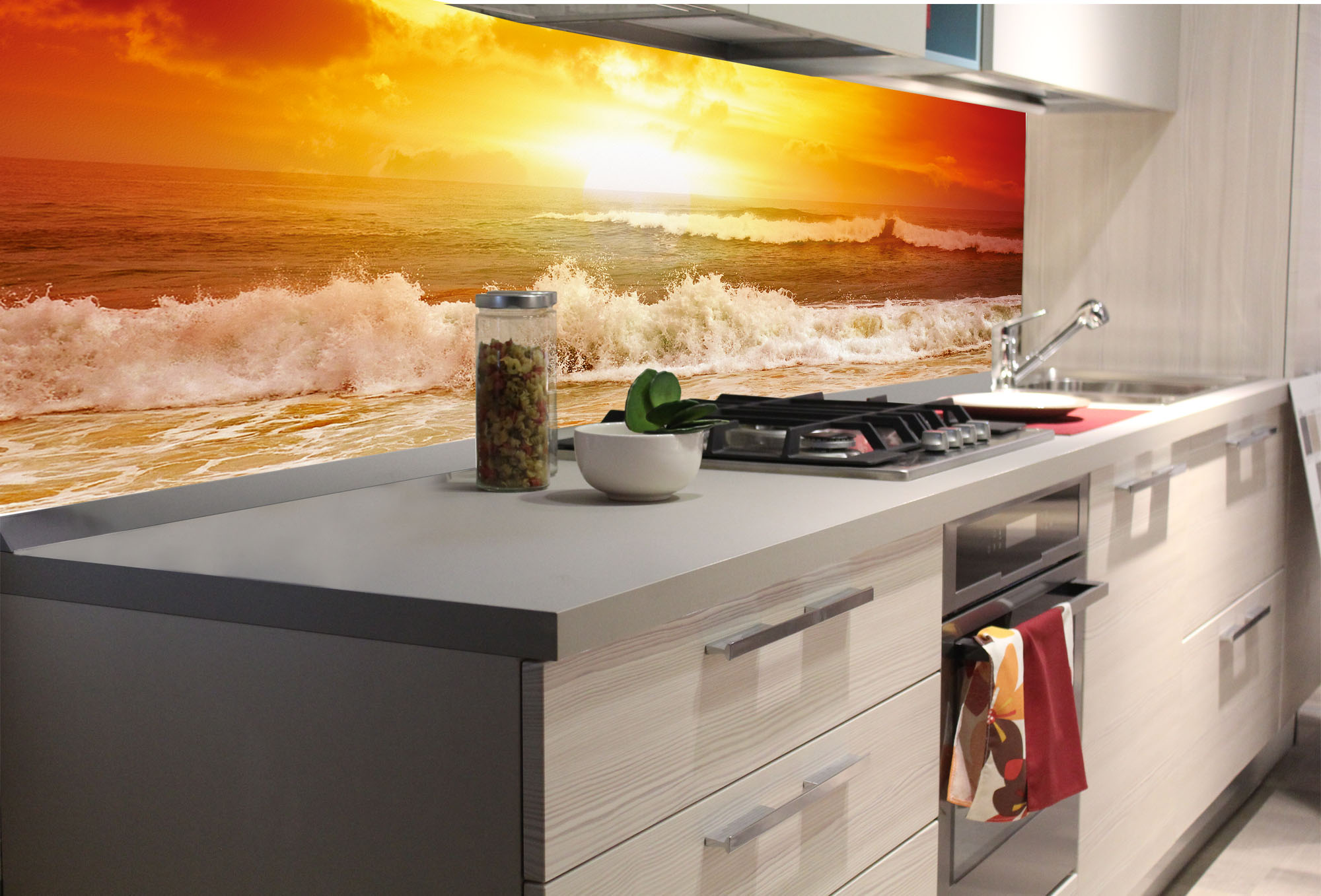 KI-180-204 Fototapet autoadeziv pentru bucătărie – Valuri la apus 180 x 60 cm