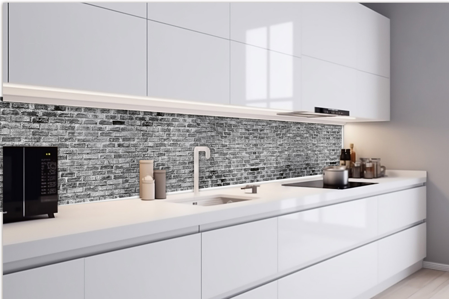 KI-420-300 Fototapet autoadeziv pentru bucătărie – Zidet gri de cărămidă 420 x 60 cm