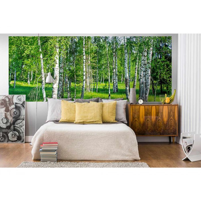 Fototapet panoramic vlies cu Dumbravă de mesteceni 375 x 150 cm