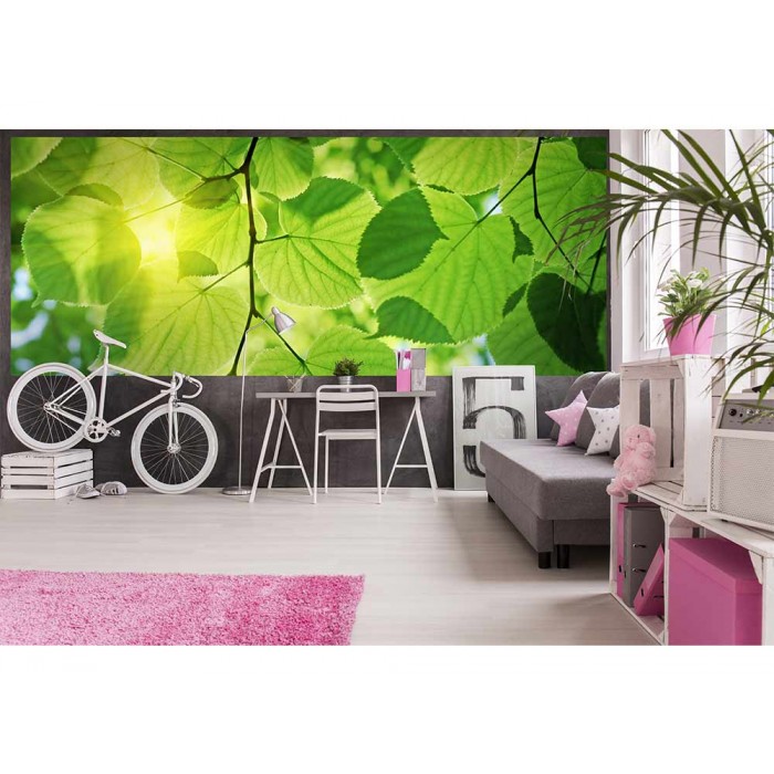 Fototapet panoramic vlies cu Frunze verzi 375 x 150 cm