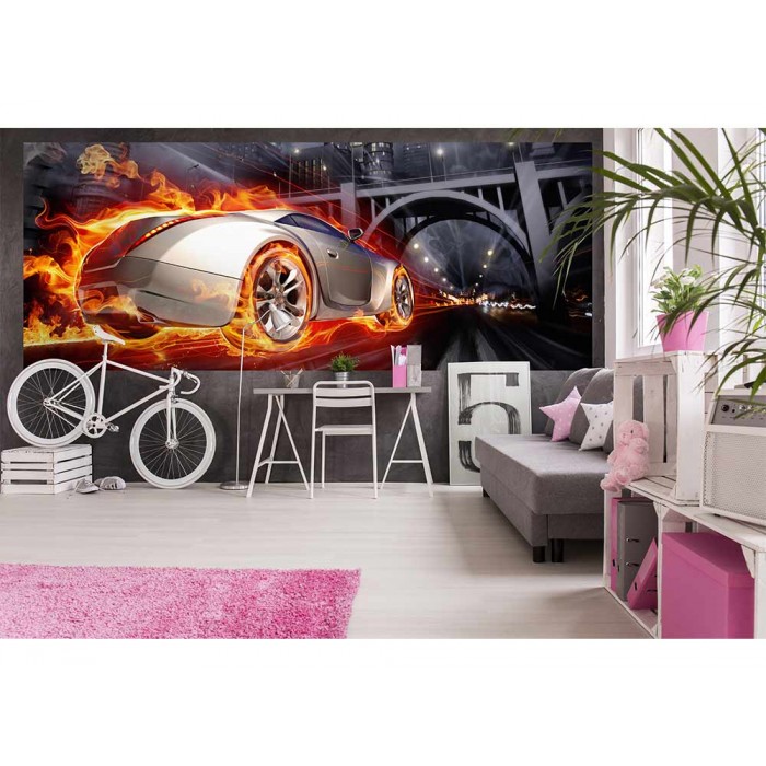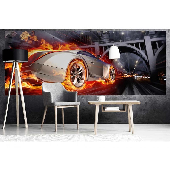 Fototapet panoramic vlies cu Mașină în flăcări 375 x 150 cm