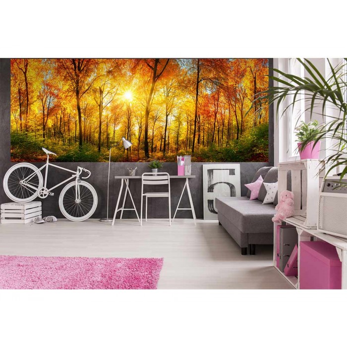 Fototapet panoramic vlies cu Pădure însorită 375 x 150 cm