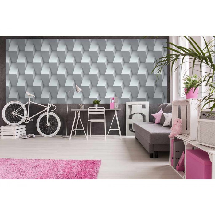 Fototapet panoramic vlies cu Perete cub 3D 375 x 150 cm