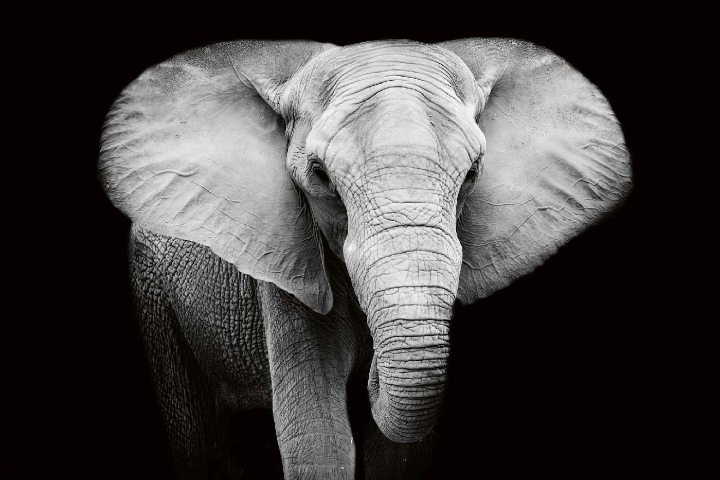MS-5-0485 Fototapetă vlies pentru perete Alb-negru elefant - 375 x 250 cm
