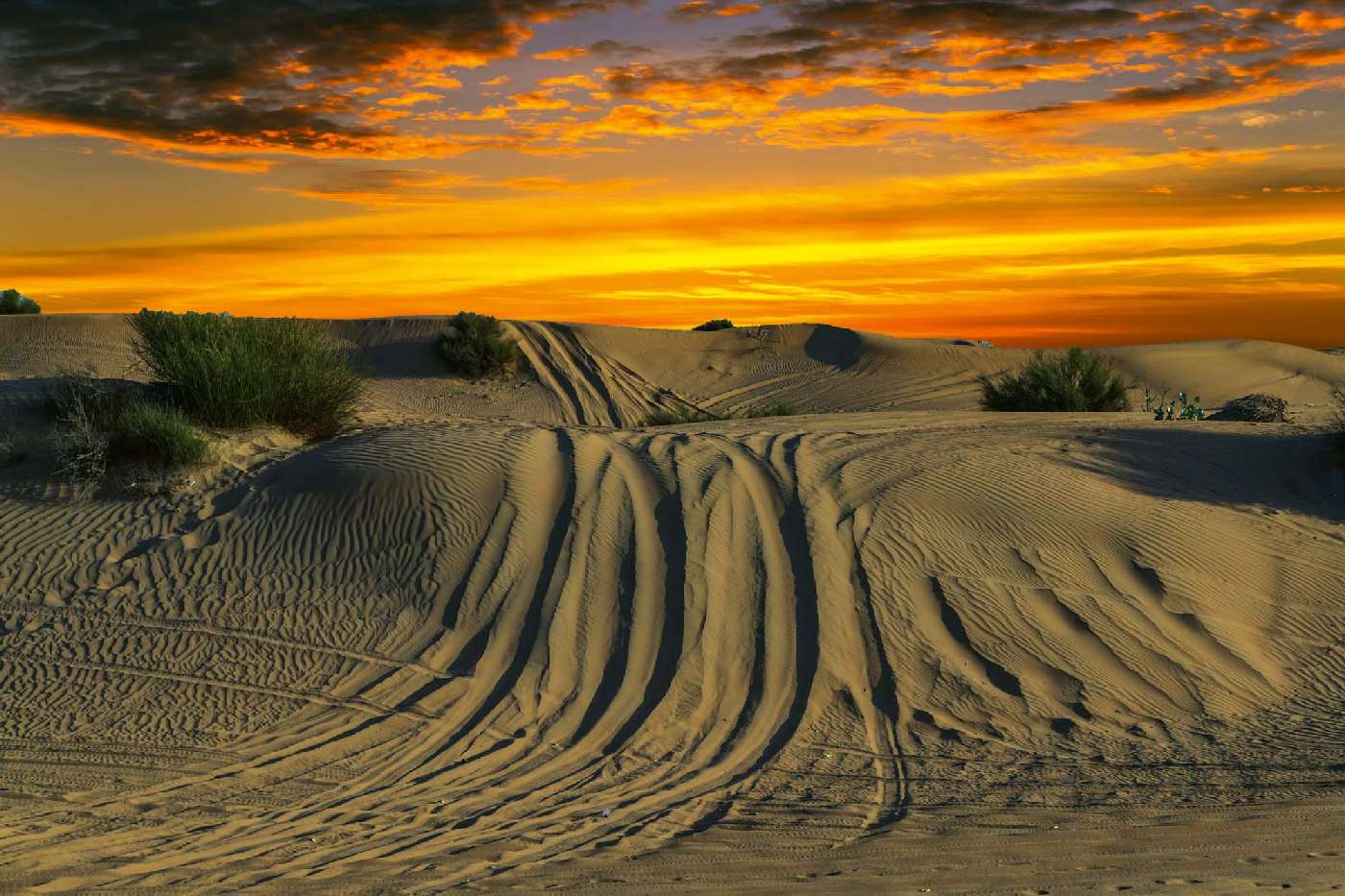MS-5-1835 Fototapetă vlies pentru perete Aurora boreală peste deșert - 375 x 250 cm