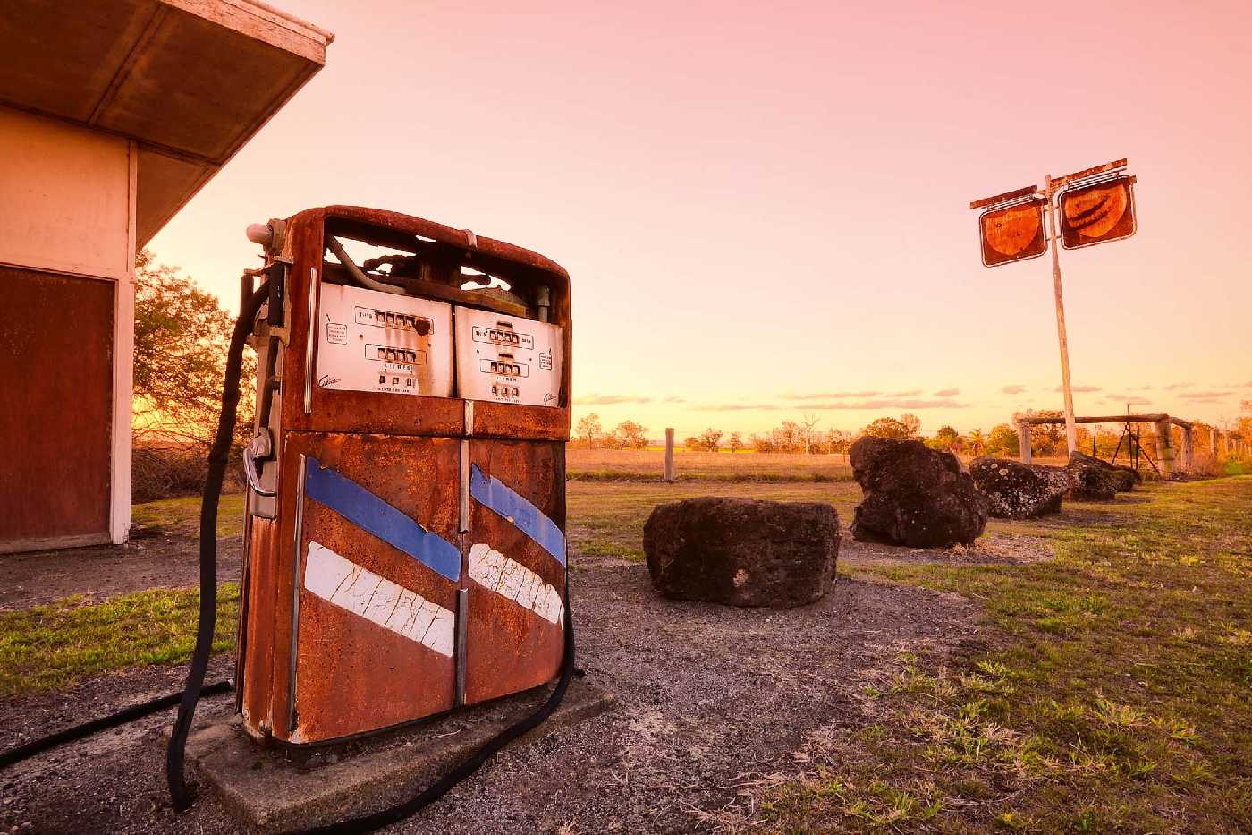 MS-5-2113 Fototapetă vlies pentru perete Benzinărie ruginită veche - 375 x 250 cm