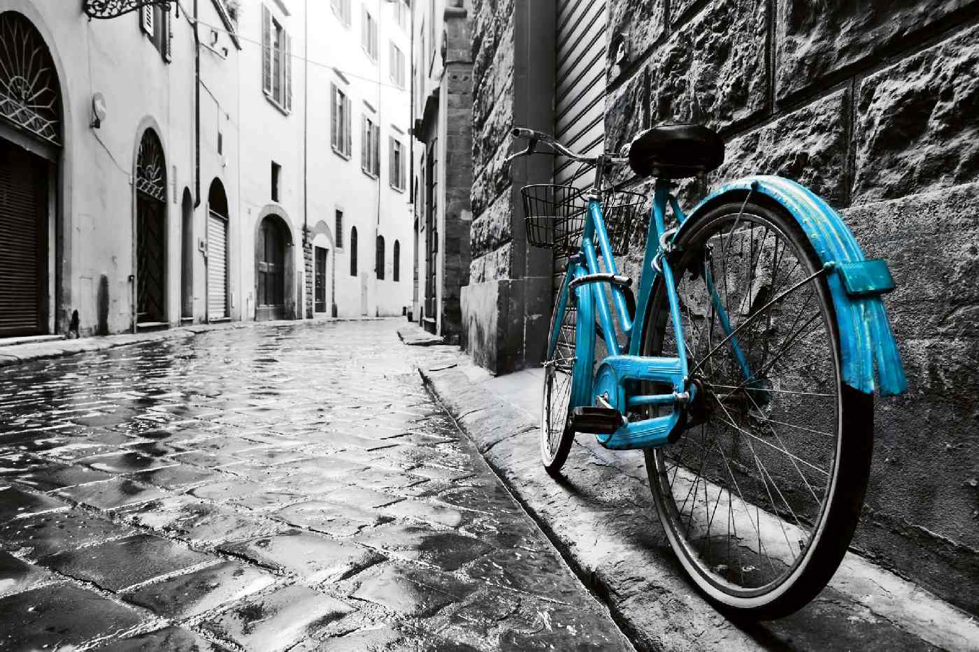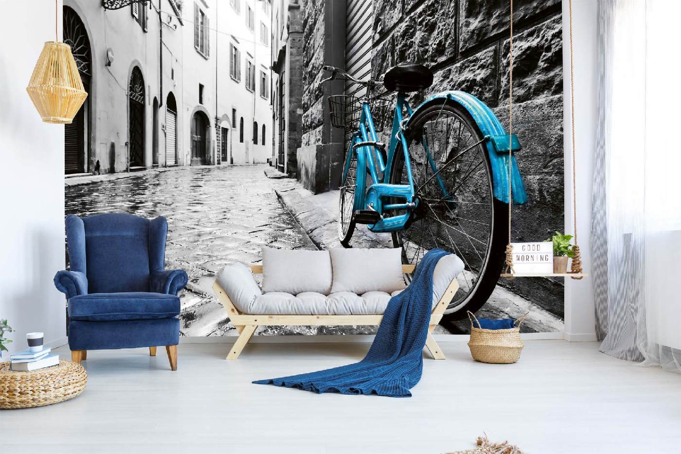 MS-5-2795 Fototapetă vlies pentru perete Bicicletă albastră retro - 375 x 250 cm