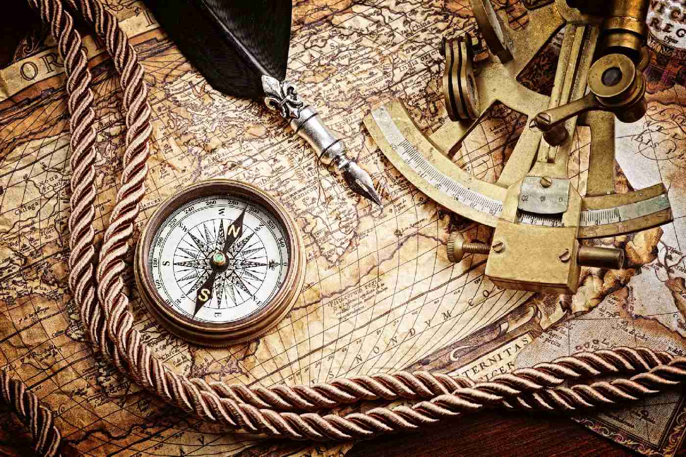 MS-5-1554 Fototapetă vlies pentru perete Busolă de epocă pe hartă II. - 375 x 250 cm