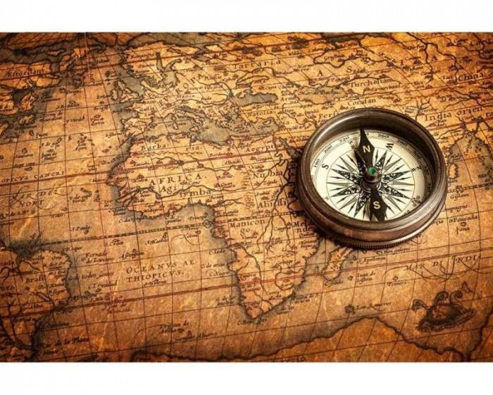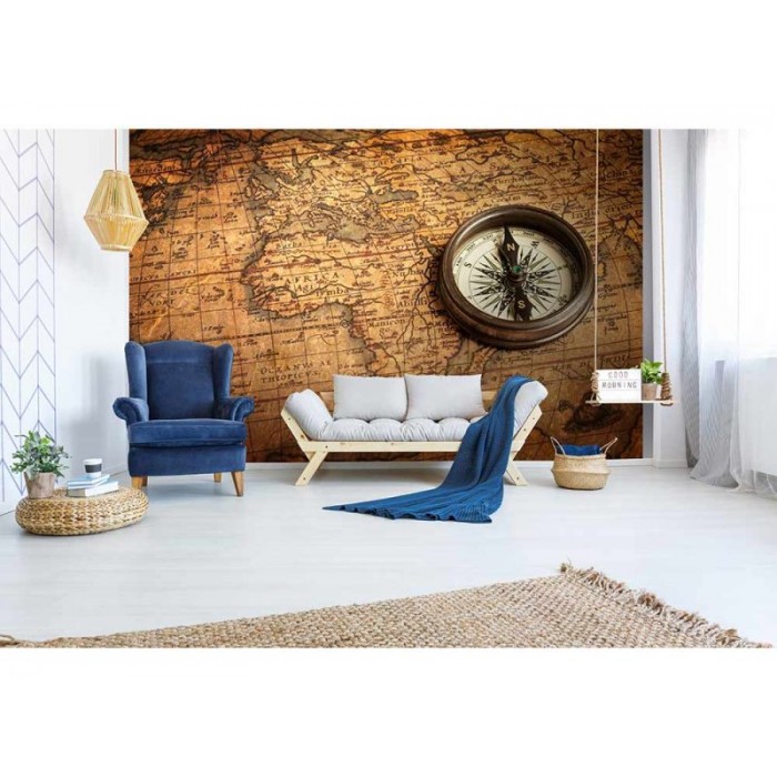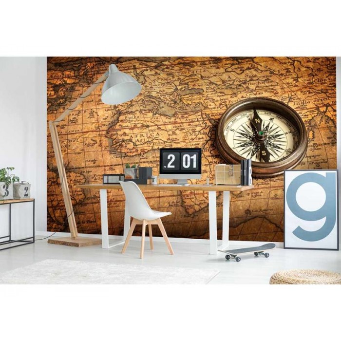 MS-5-0264 Fototapetă vlies pentru perete Busolă și hartă - 375 x 250 cm