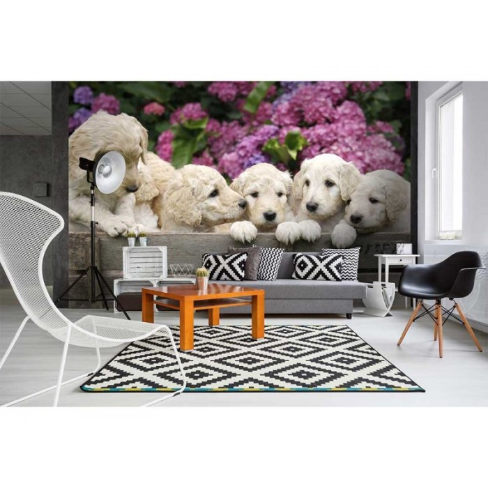 MS-5-0224 Fototapetă vlies pentru perete Cățeluși de Labrador - 375 x 250 cm
