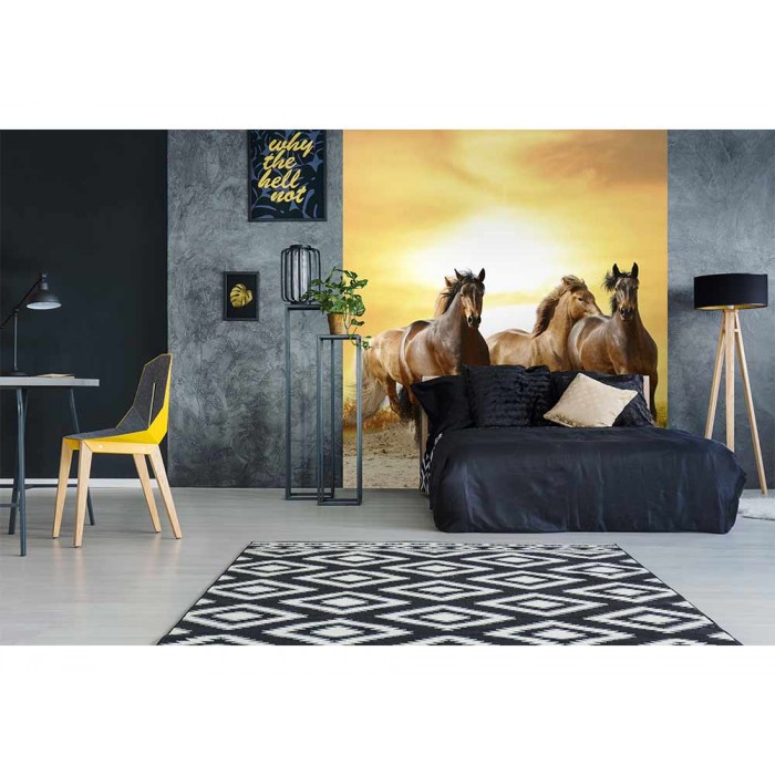 MS-3-0227 Fototapetă vlies pentru perete Cai la apus - 225 x 250 cm