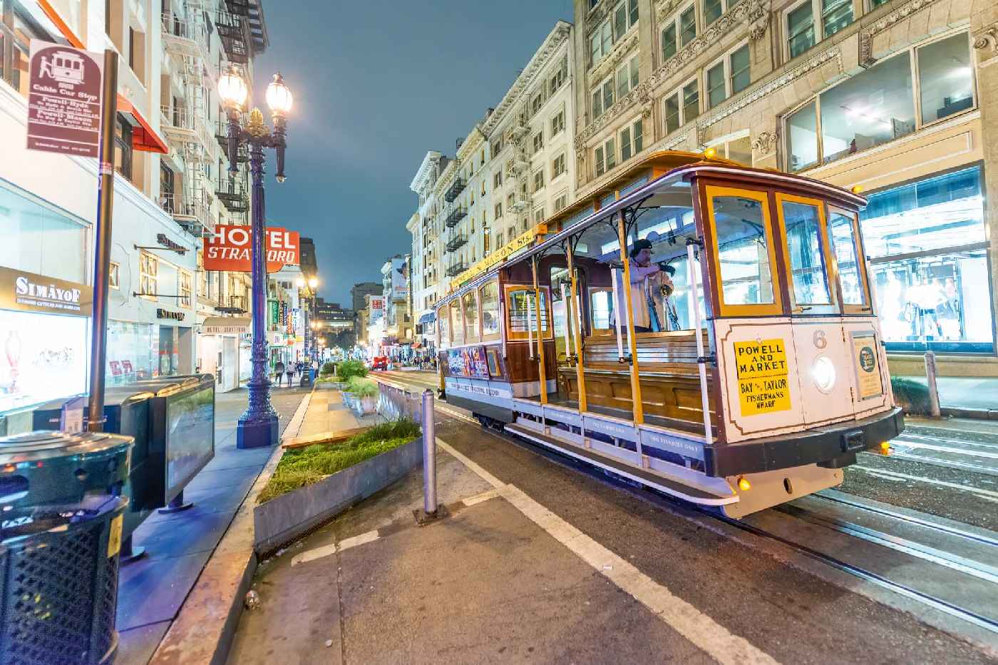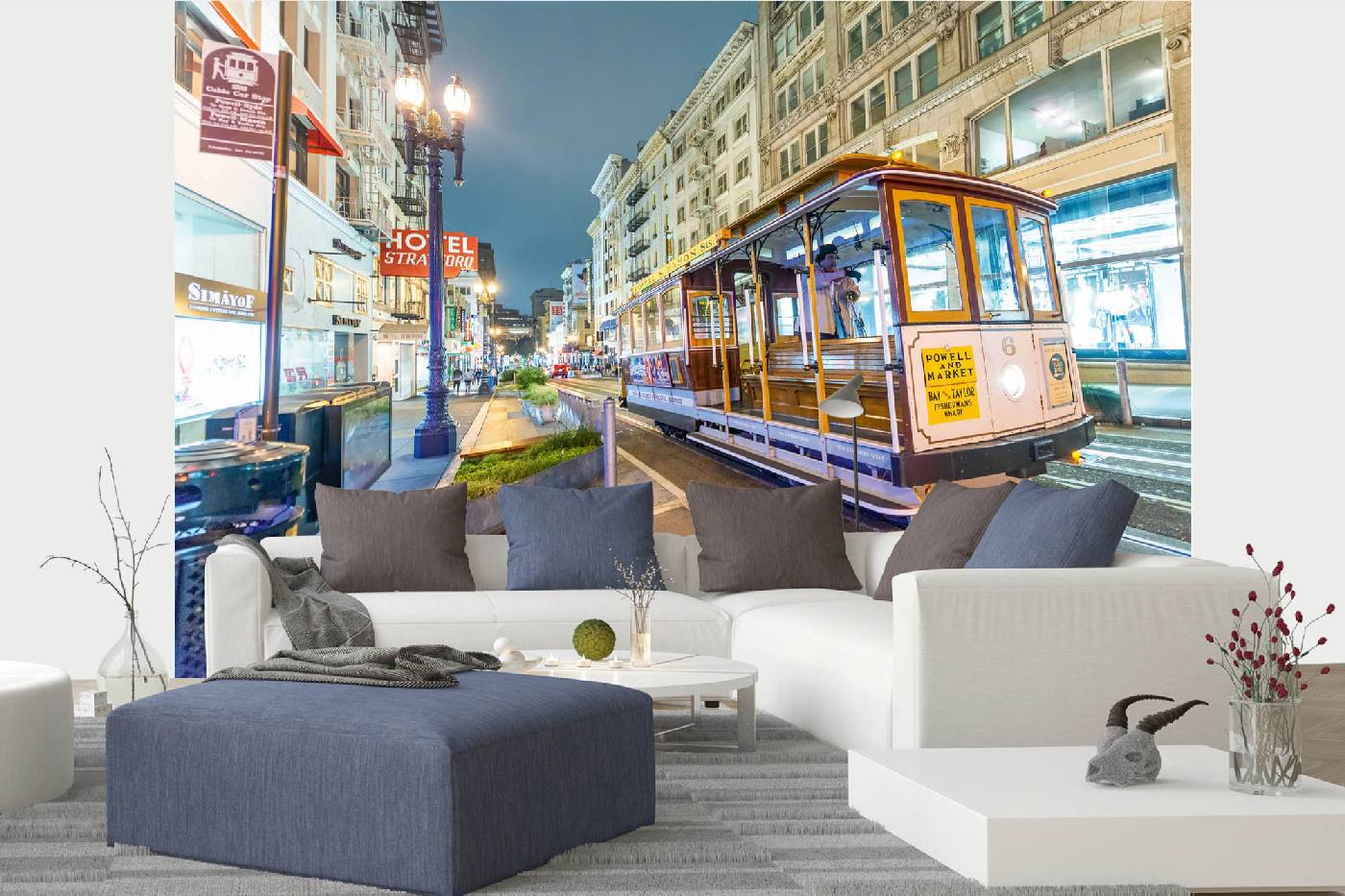 MS-5-2889 Fototapetă vlies pentru perete Călătorie nocturnă cu tramvaiul - 375 x 250 cm