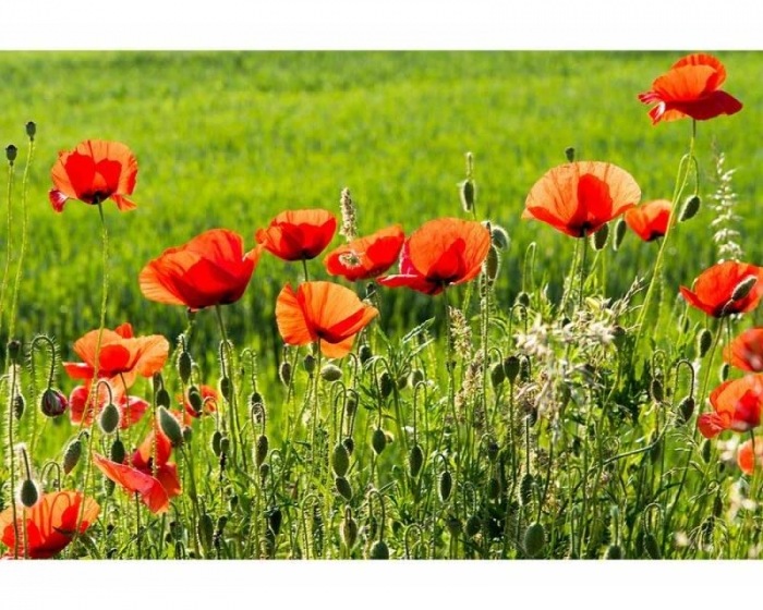 MS-5-0092 Fototapetă vlies pentru perete Câmp de maci - 375 x 250 cm