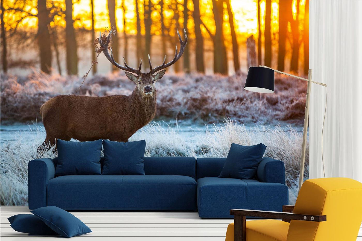 MS-5-0616 Fototapetă vlies pentru perete Cerb în peisaj de iarnă - 375 x 250 cm