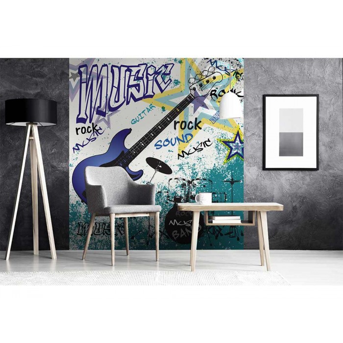 MS-3-0323 Fototapetă vlies pentru perete Chitară albastră - 225 x 250 cm
