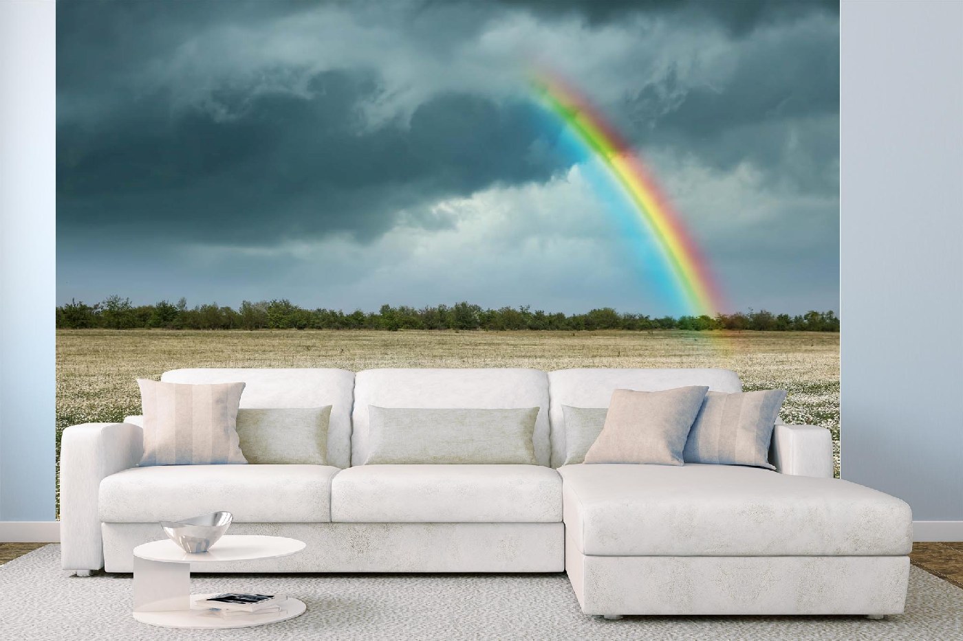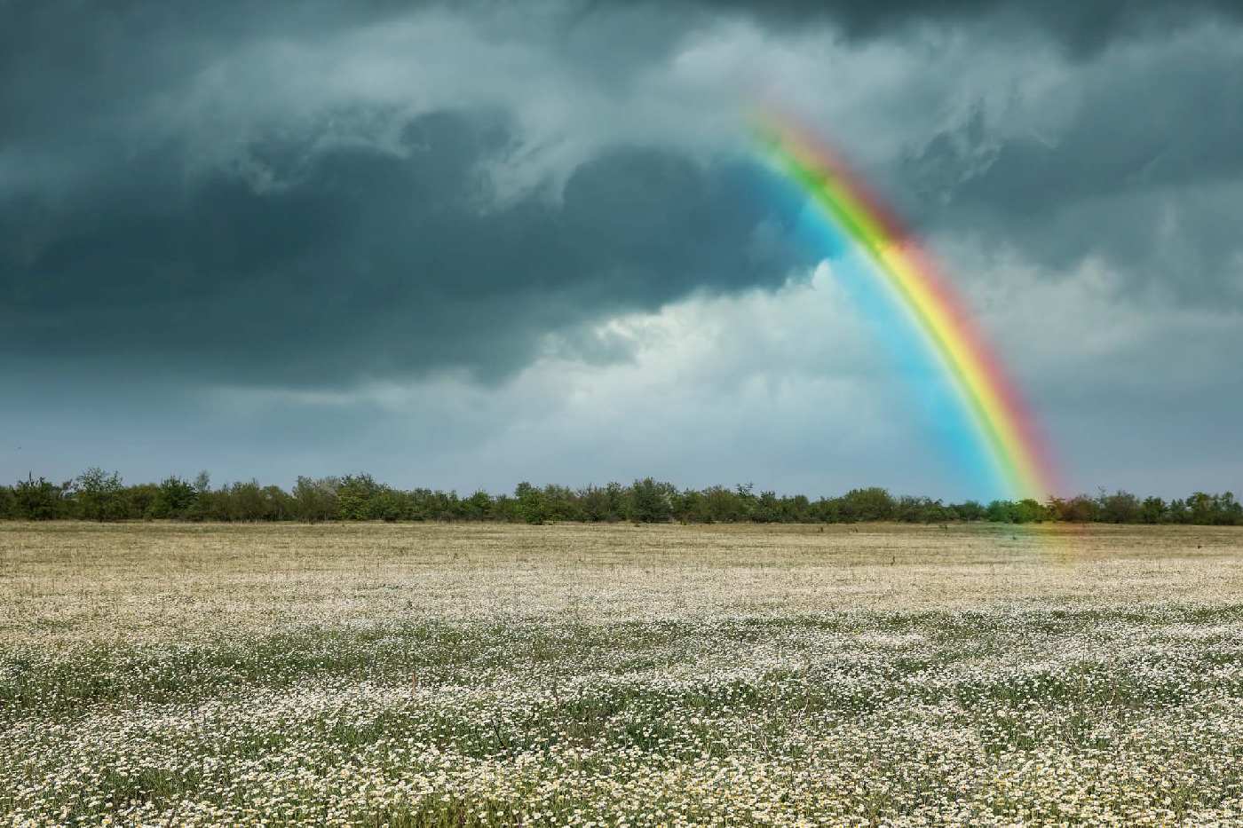 MS-5-1717 Fototapetă vlies pentru perete Curcubeu peste câmp de mușețel - 375 x 250 cm