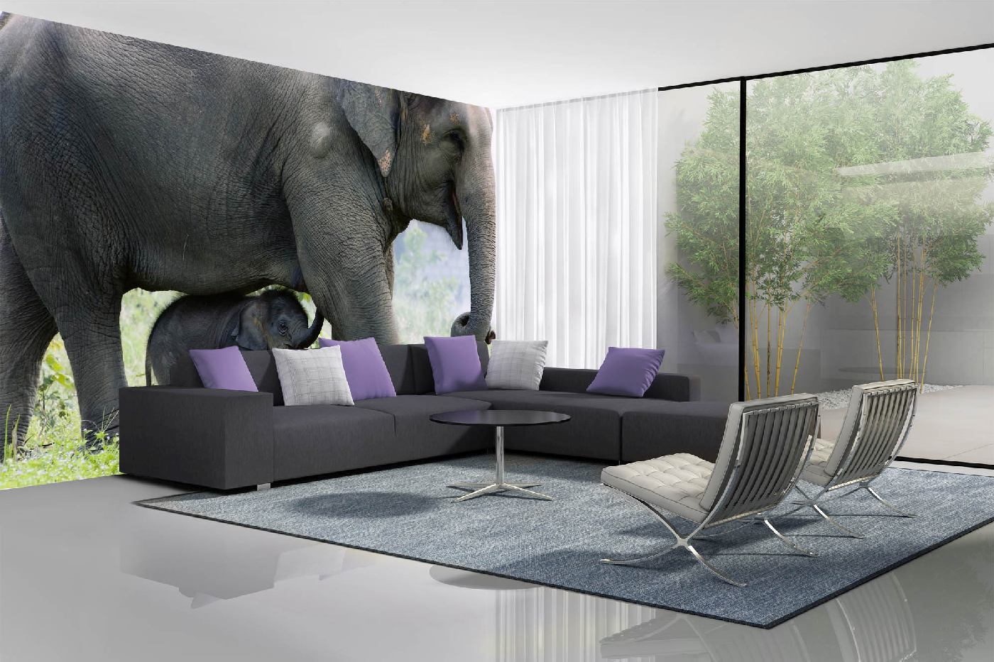 MS-5-0493 Fototapetă vlies pentru perete Elefanți cu pui de elefant - 375 x 250 cm