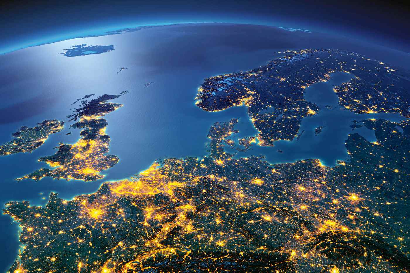 MS-5-2256 Fototapetă vlies pentru perete Europa nocturnă din spațiu - 375 x 250 cm