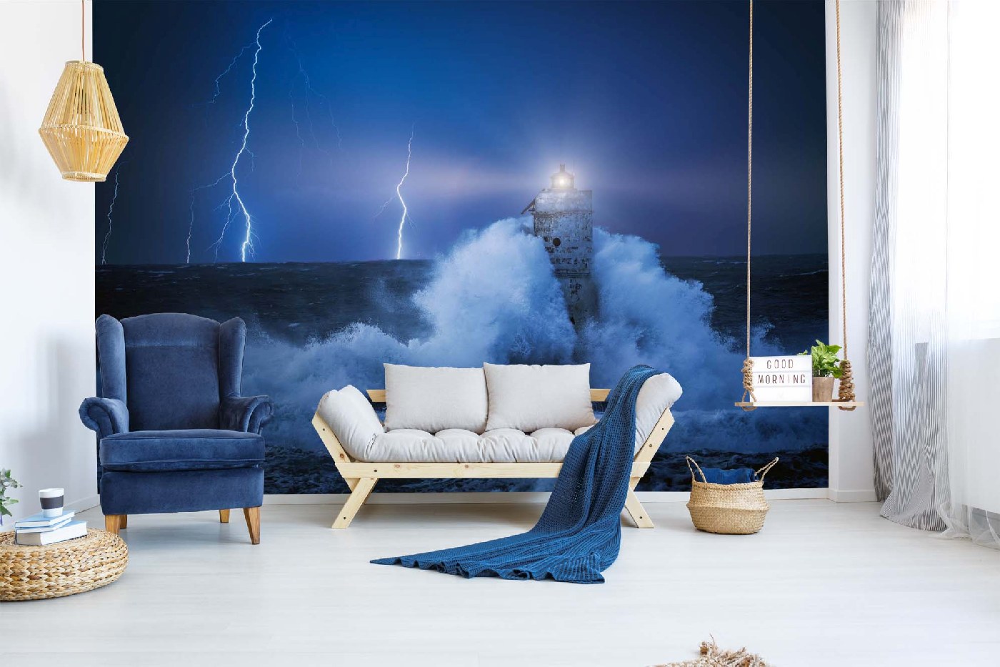 MS-5-2309 Fototapetă vlies pentru perete Far în furtună - 375 x 250 cm