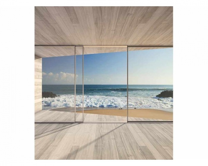 MS-3-0042 Fototapetă vlies pentru perete Fereastră spre plajă - 225 x 250 cm