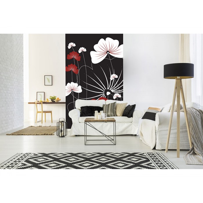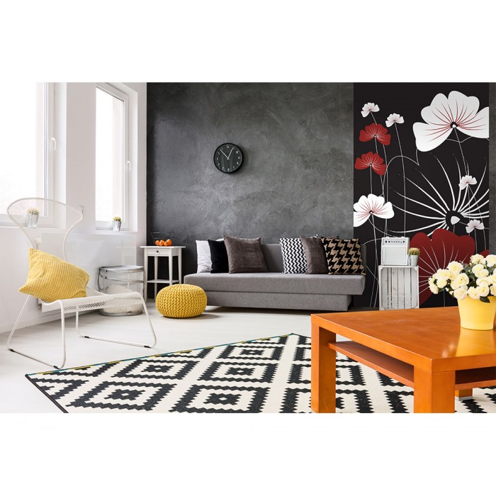MS-2-0156 Fototapetă vlies pentru perete Flori pe fundal negru - 150 x 250 cm